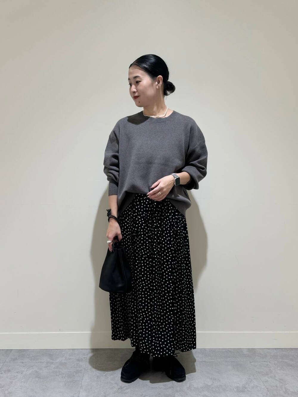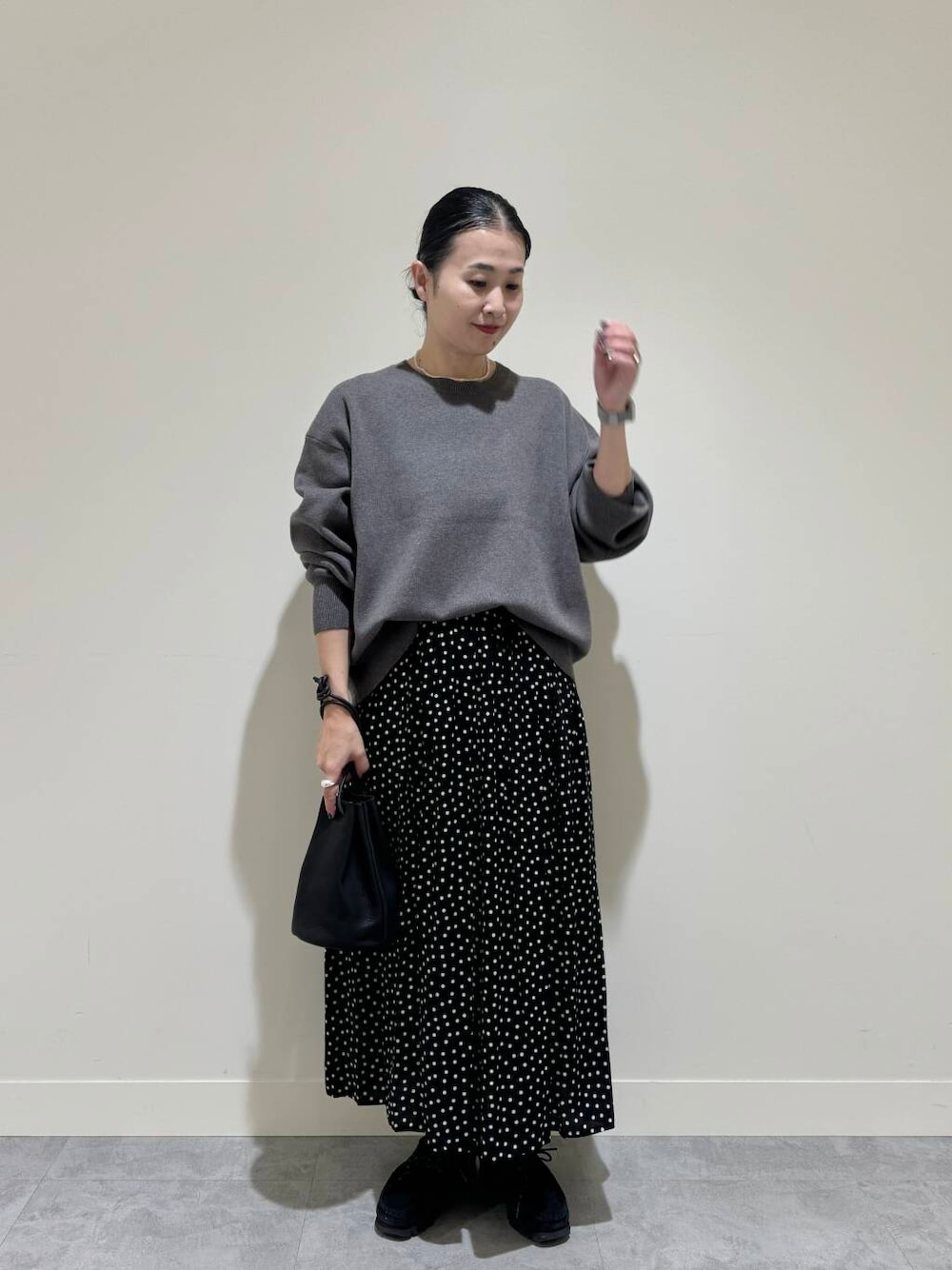甘めなドットもダークトーンでシックに合わせました。