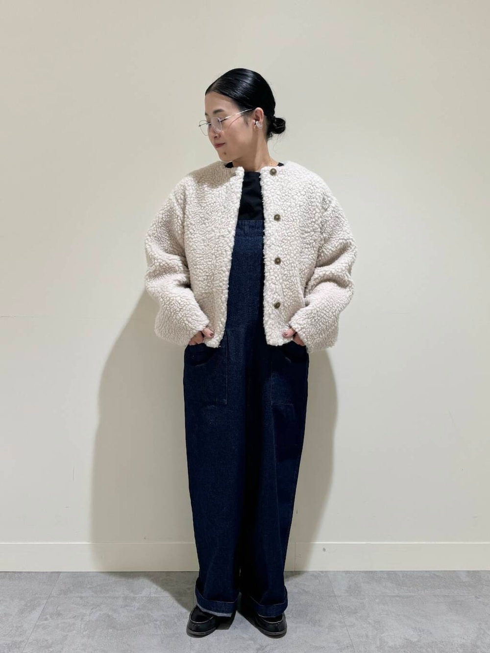 黒+デニムサロペットの