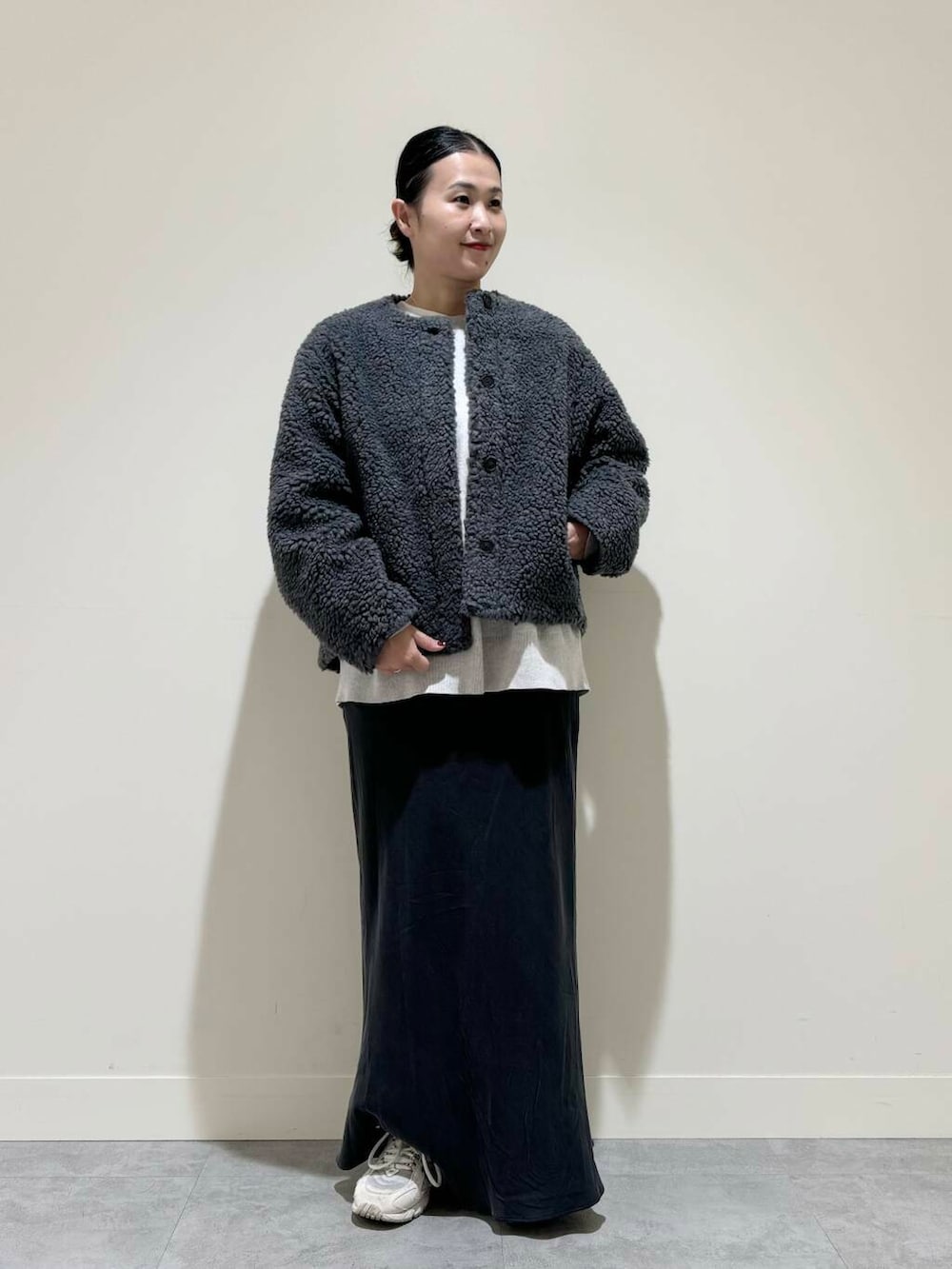 長さは気分や靴によってウエストを1つ折って調整しています。