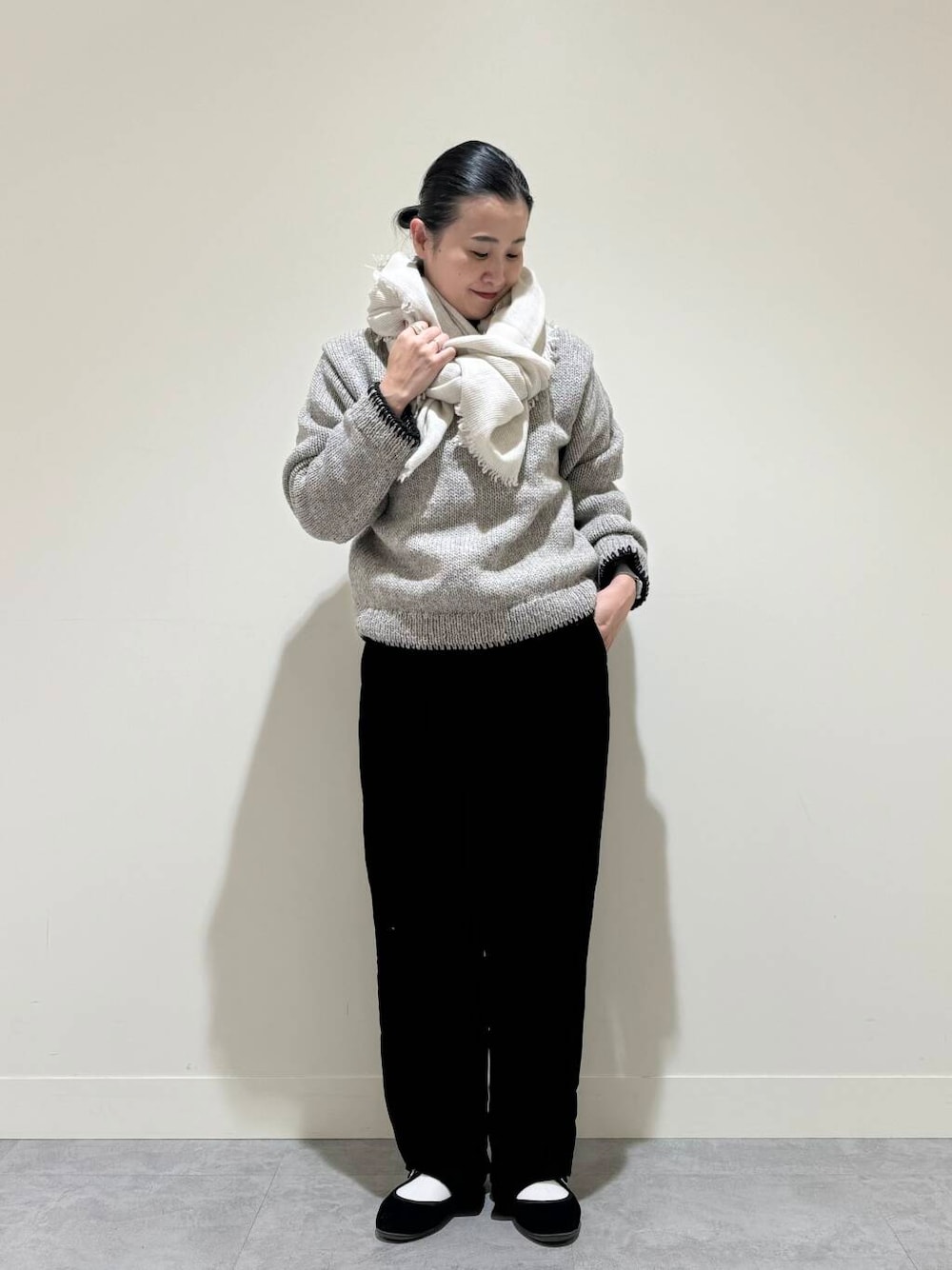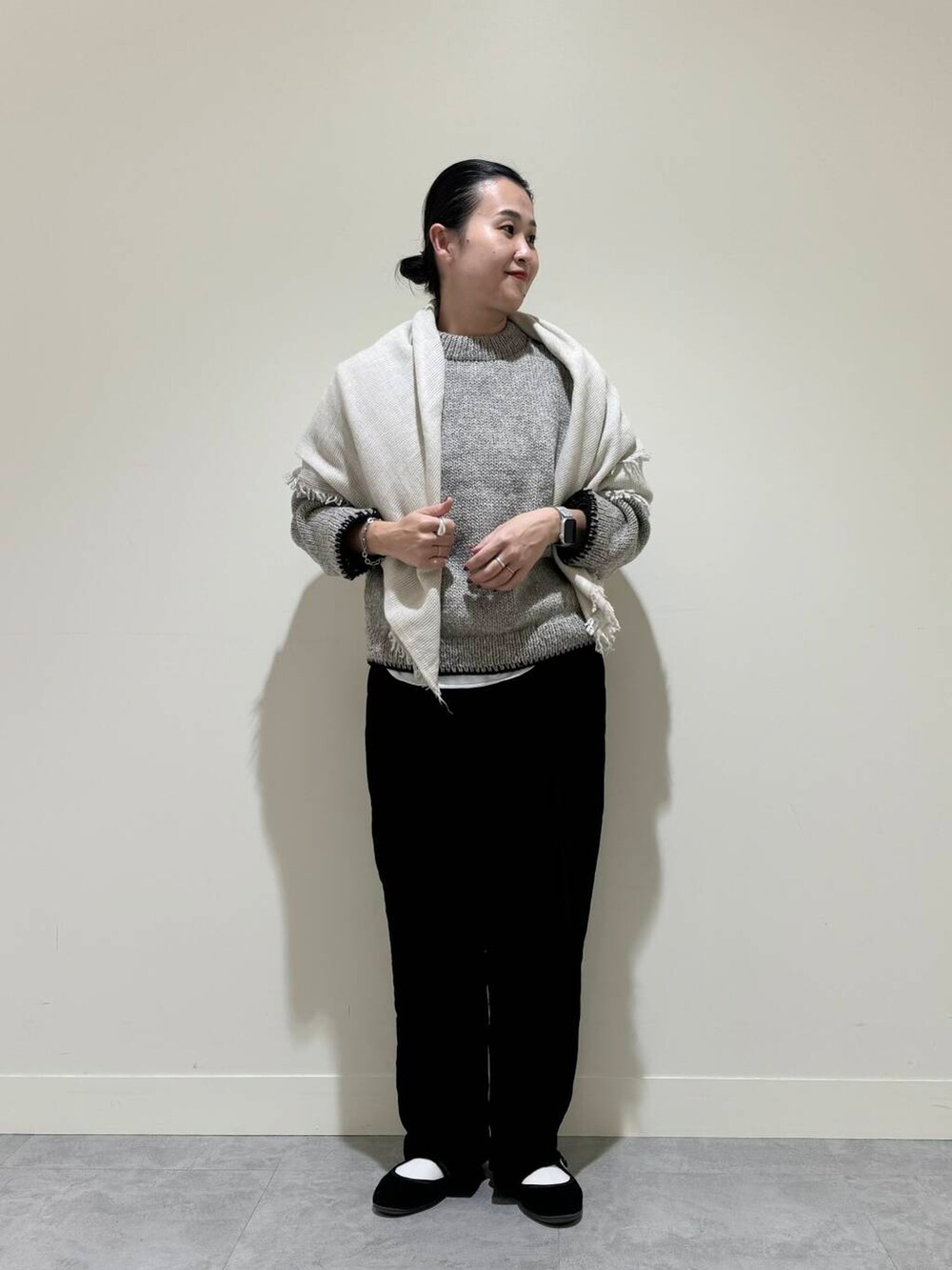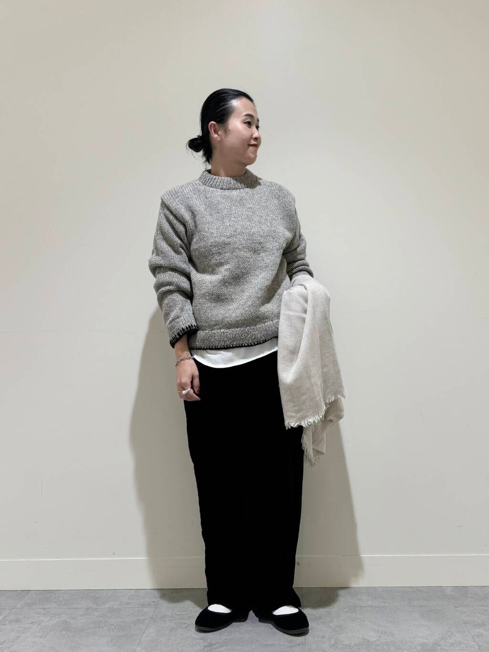 合わせたストールはOLU NATURAL BASICのストール。