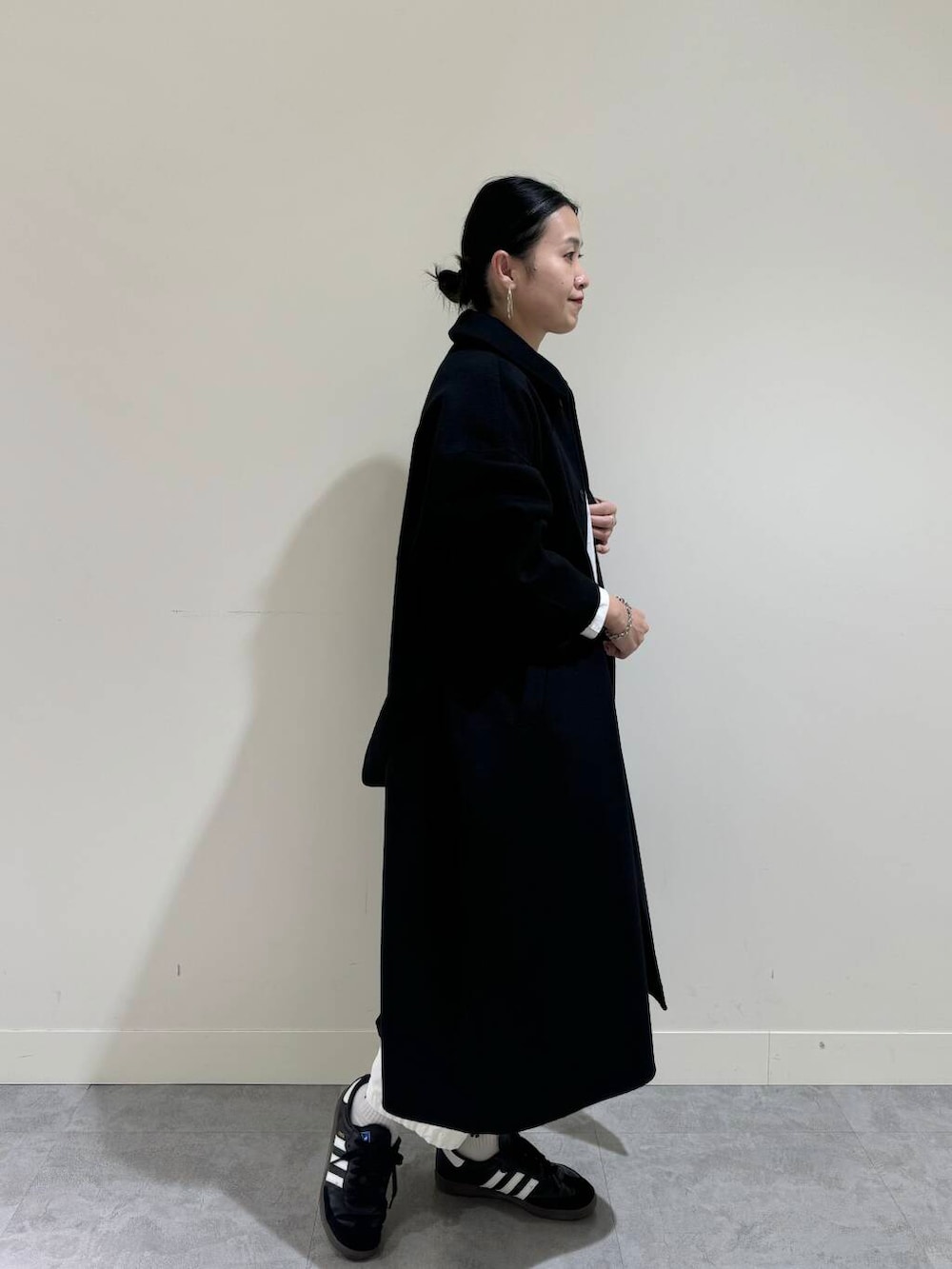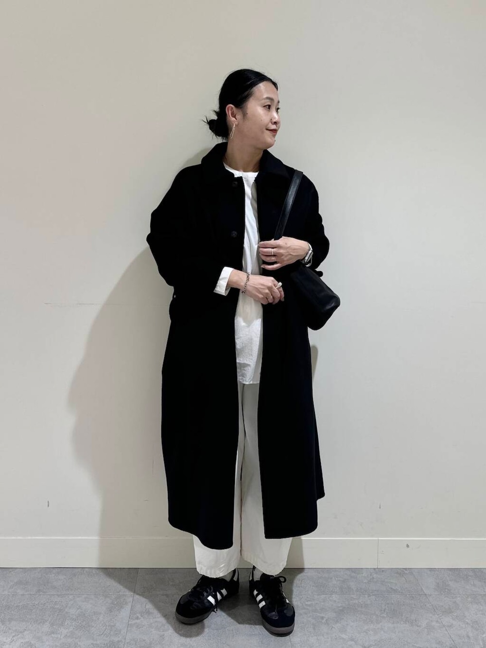 コーディネートは、白黒パッキリモノトーンスタイル。