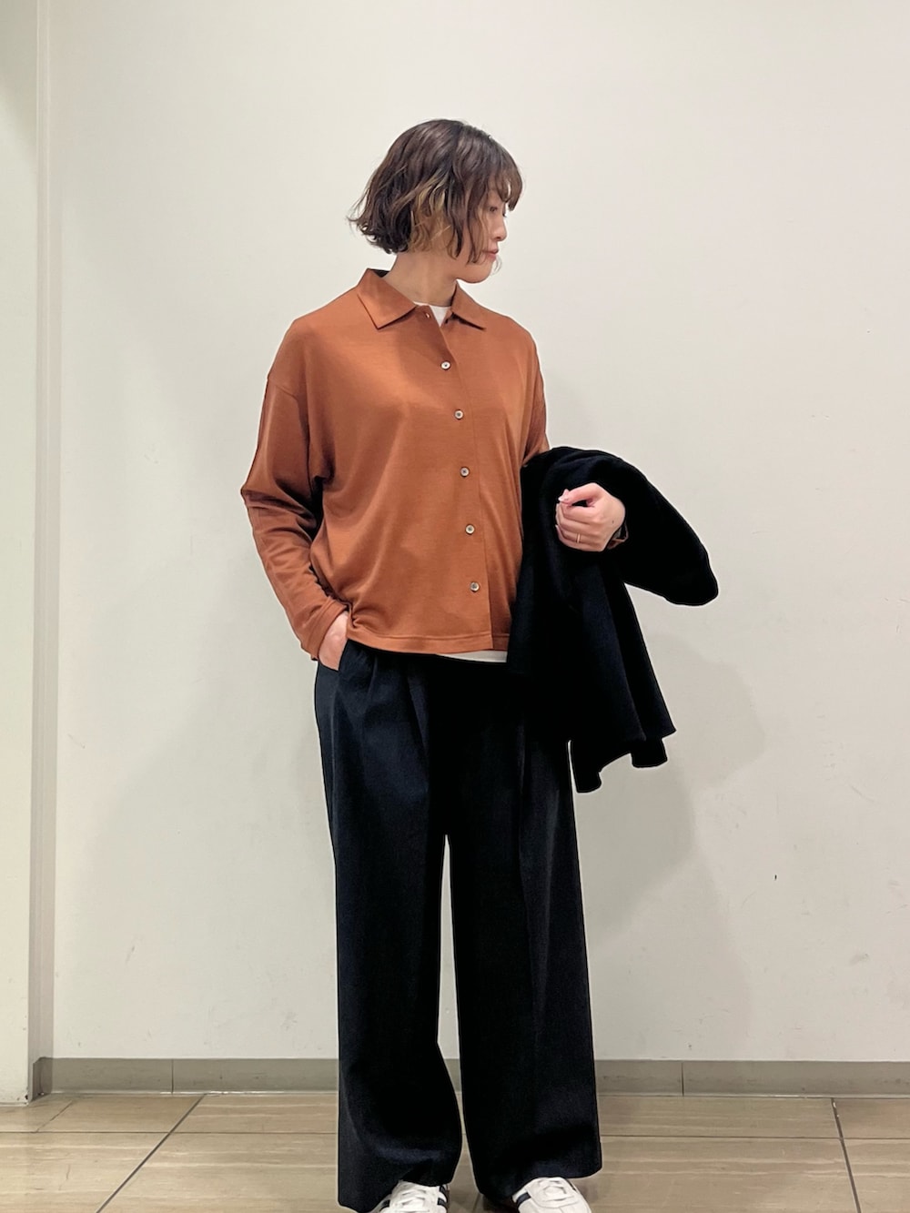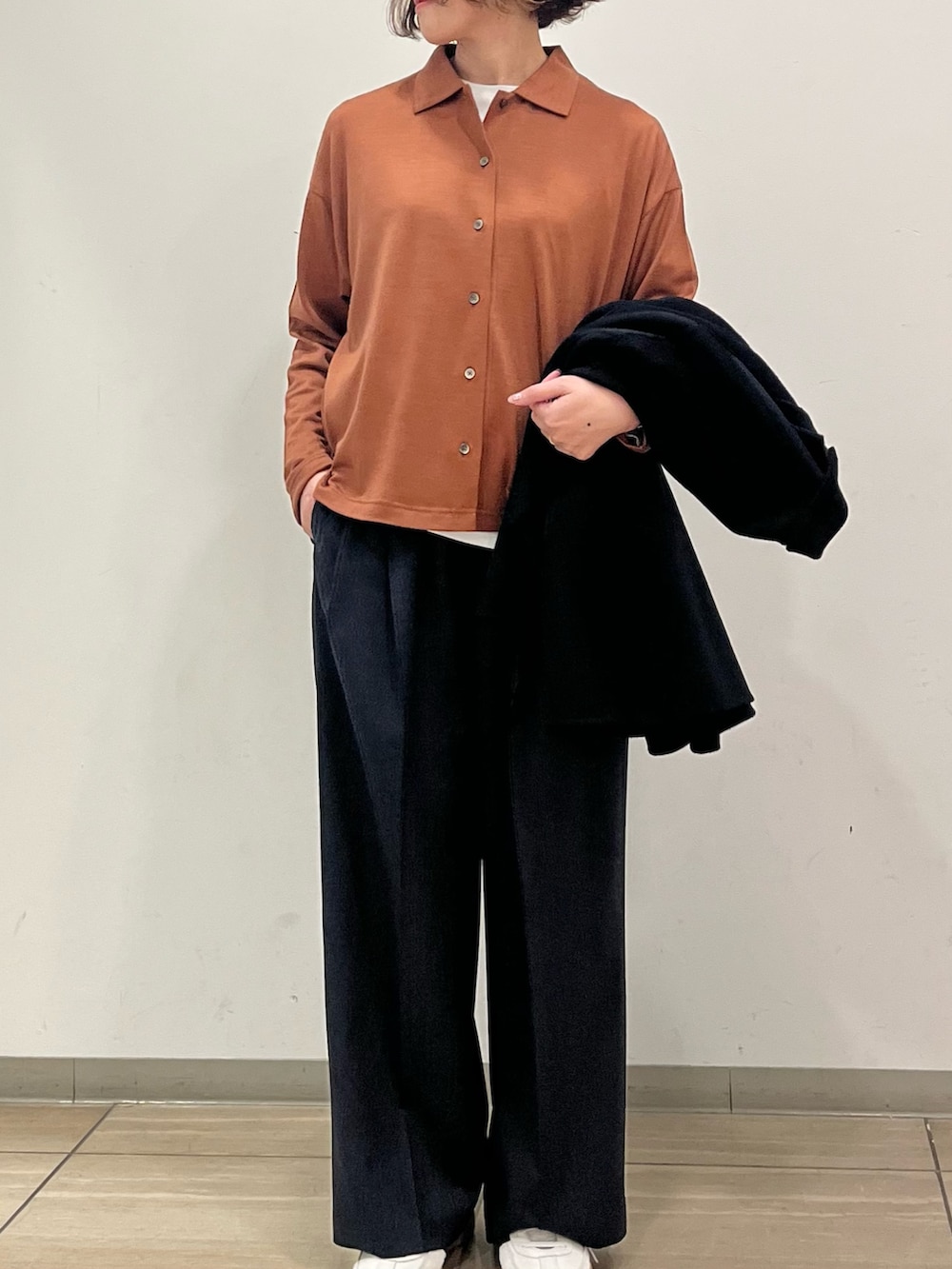 新入荷のウールカットシャツはとろみのある素材で着心地がとても気持ちがいいです。
