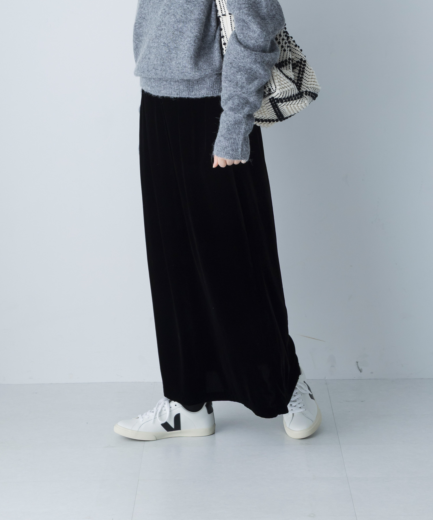 ベルベットシリーズはセットアップで着用しても素敵ですが、スカート単体でもニットとの相性もバッチリです◎