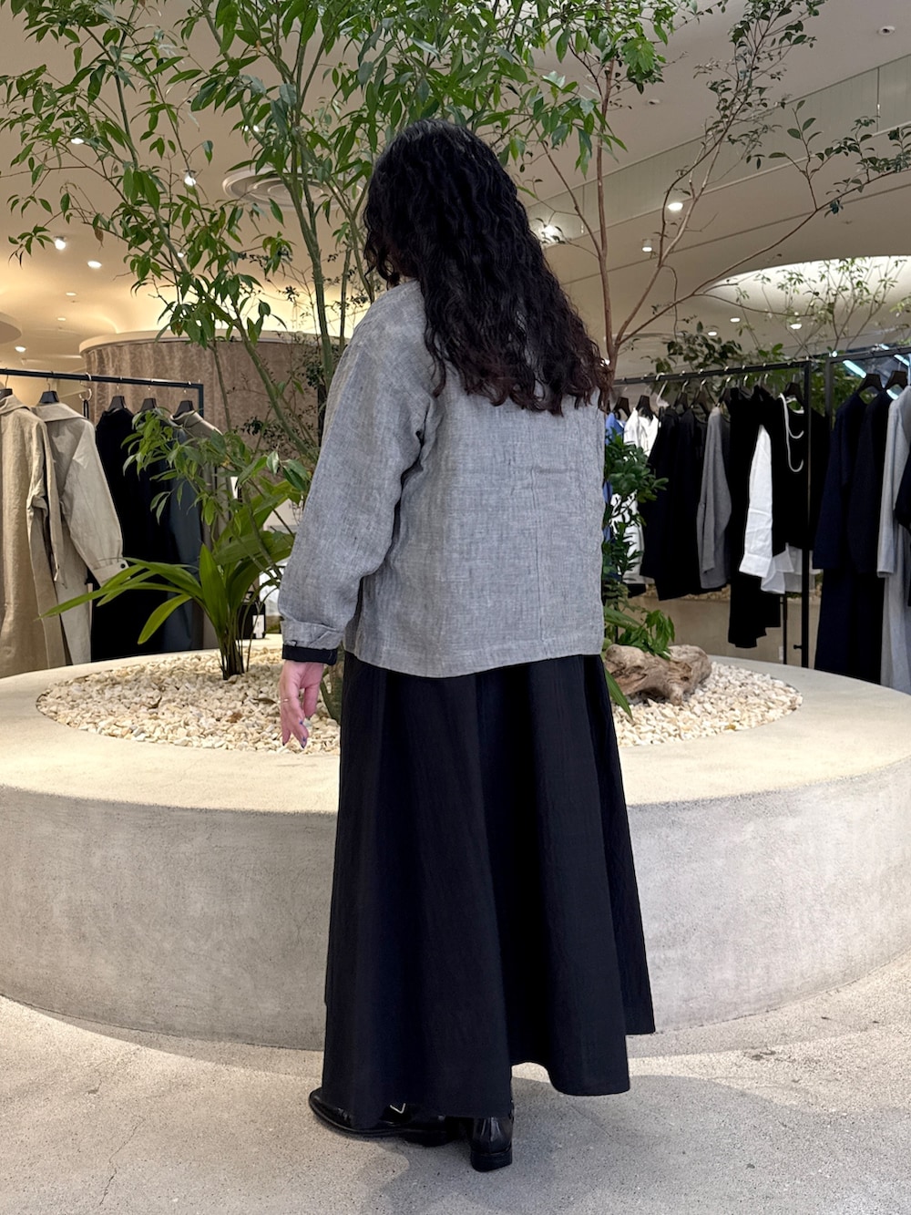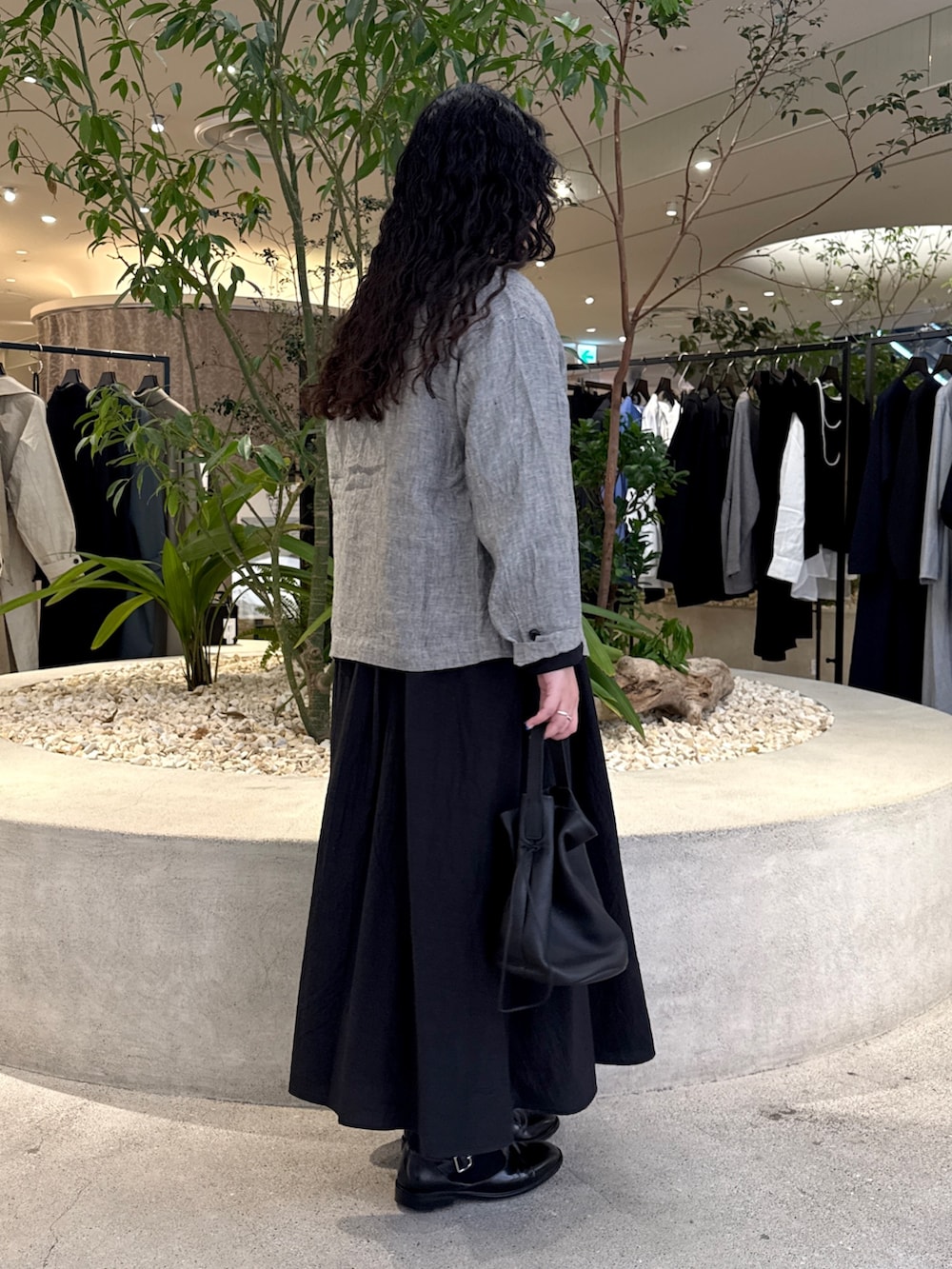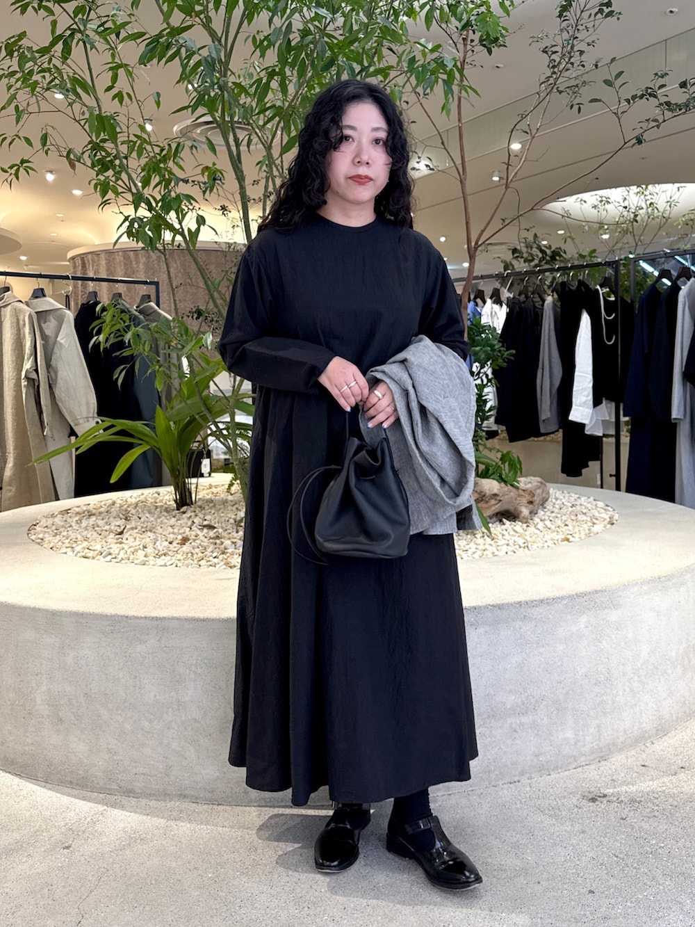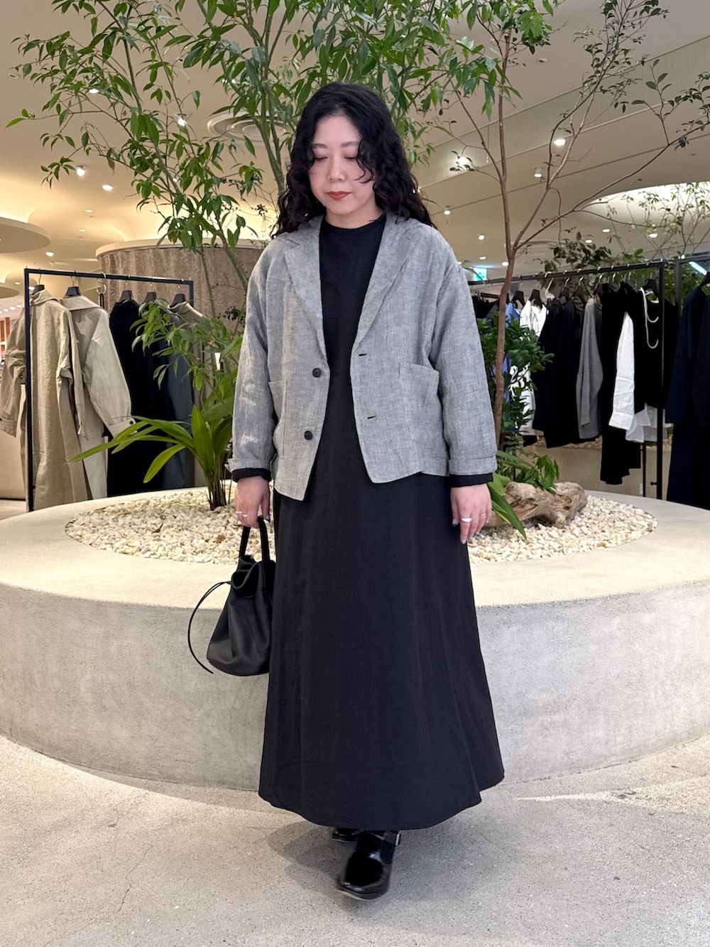 インスタライブではオケージョン対応可能なジャケットもワンピースも黒色で揃えてましたが、今回はご質問でもあった少しカジュアルダウンした組み合わせにしています。