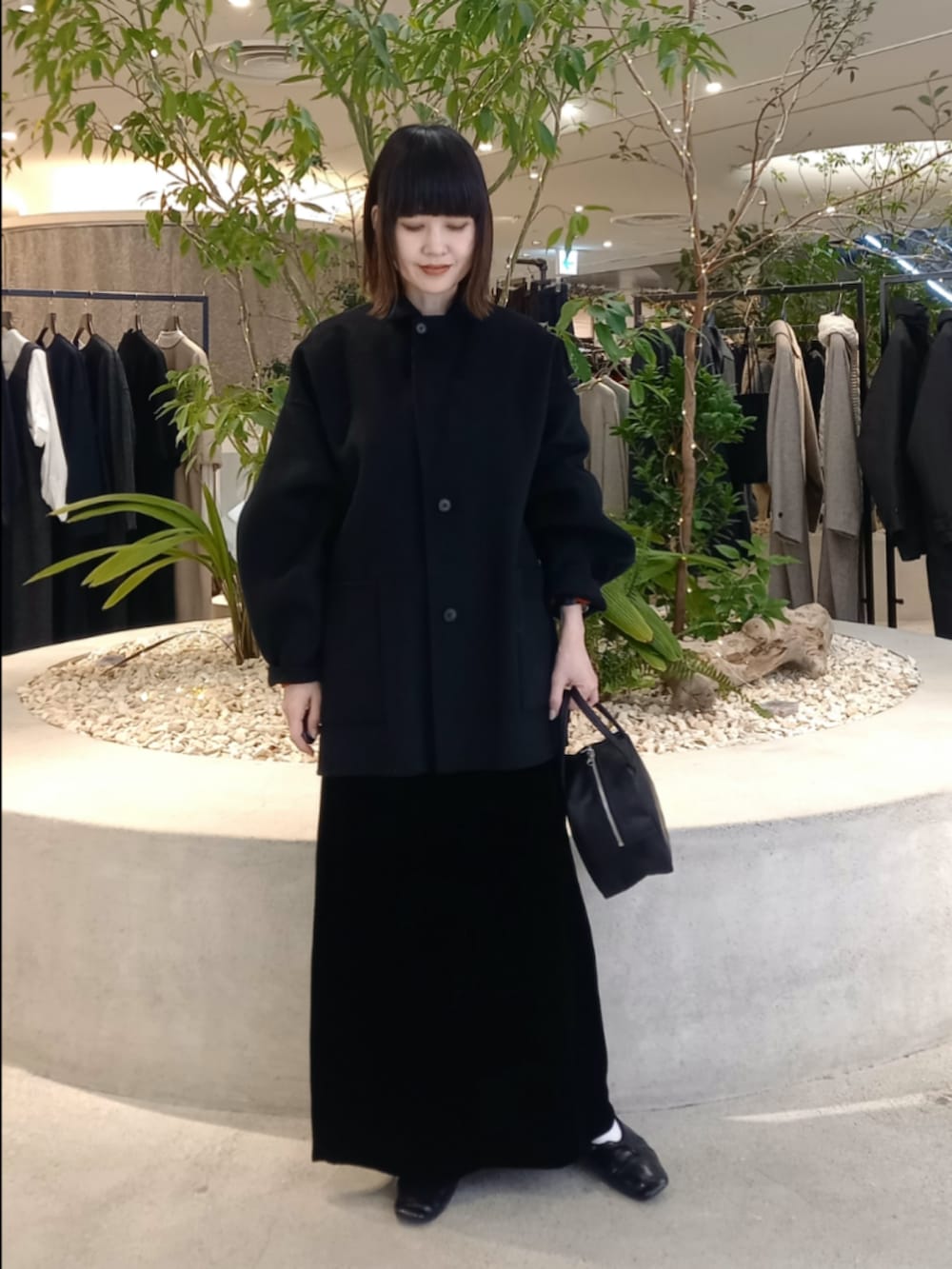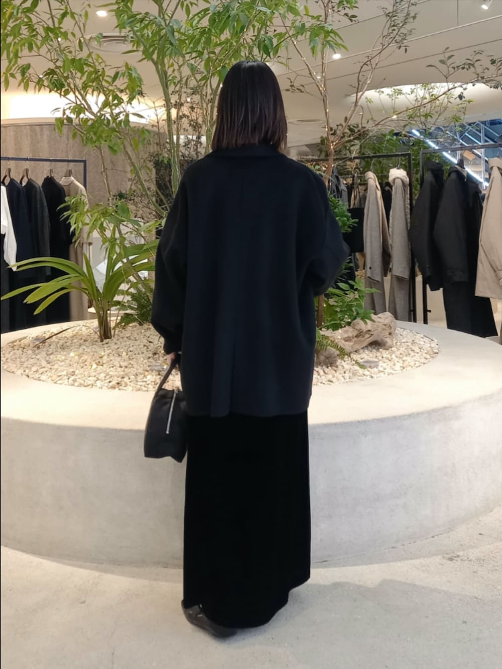 ボタンを閉めると首もとまであたたかく、ゆったりシルエットなので中に厚手のニットやスウェットなども着込めます◎