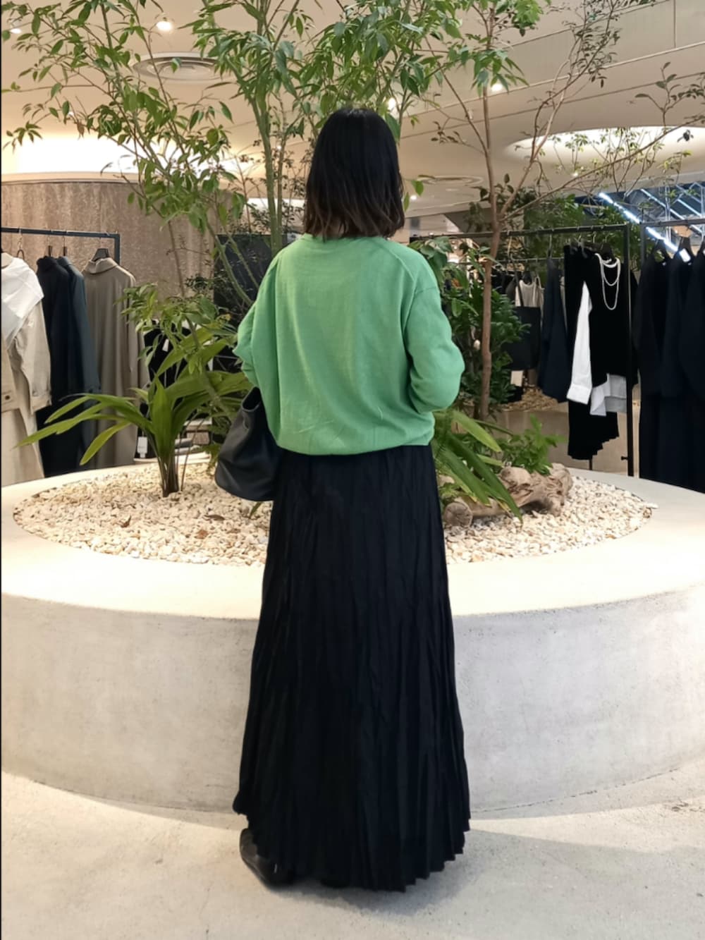 素材はとても柔らかくチクチク感のない着心地で、カシミヤ混なので肌触りの良いニットです◎