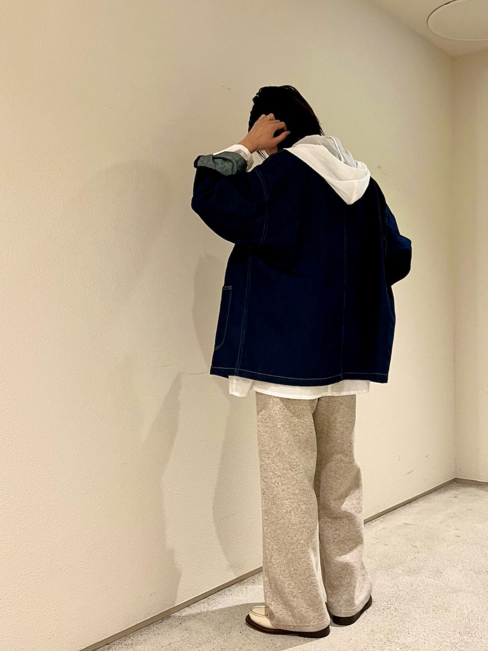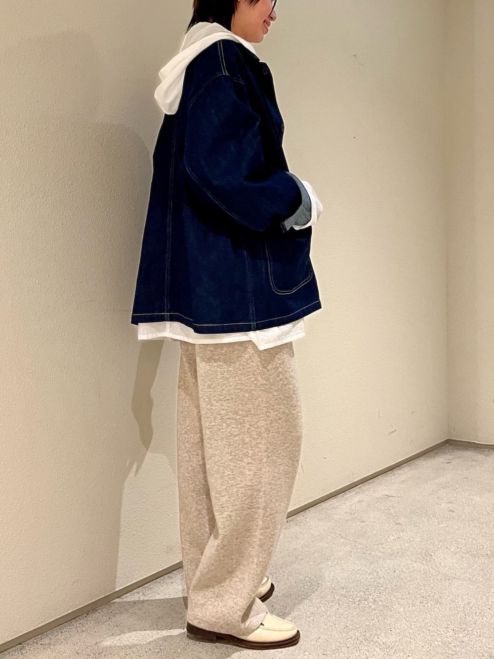 スウェットだとカジュアルになりすぎるので、ダブルフェイスイージーパンツを合わせました。