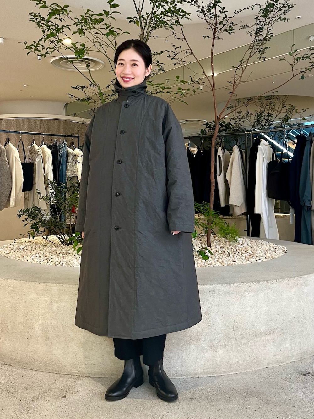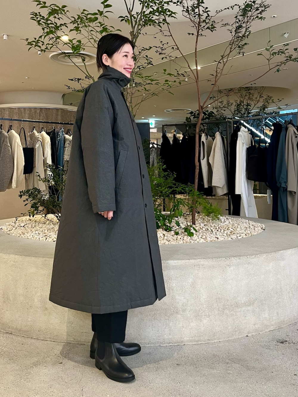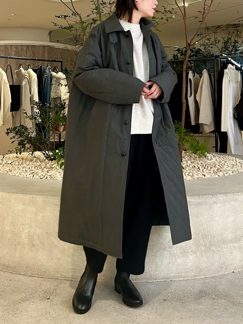内側がキルトで暖かくて軽く、腕周りゆったりのデザインでジャケットやニットの上から羽織れるコートです♪