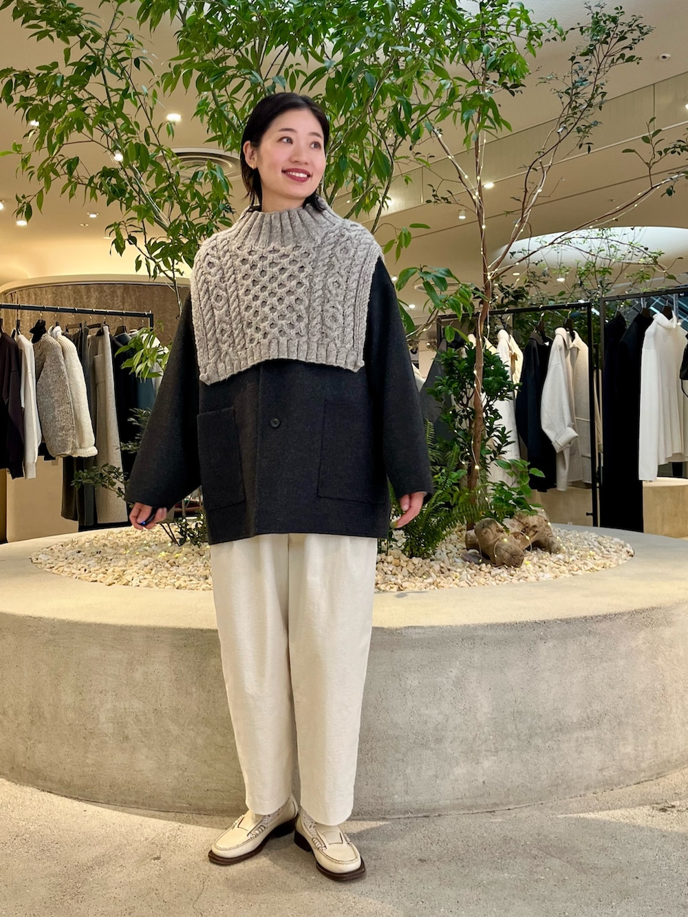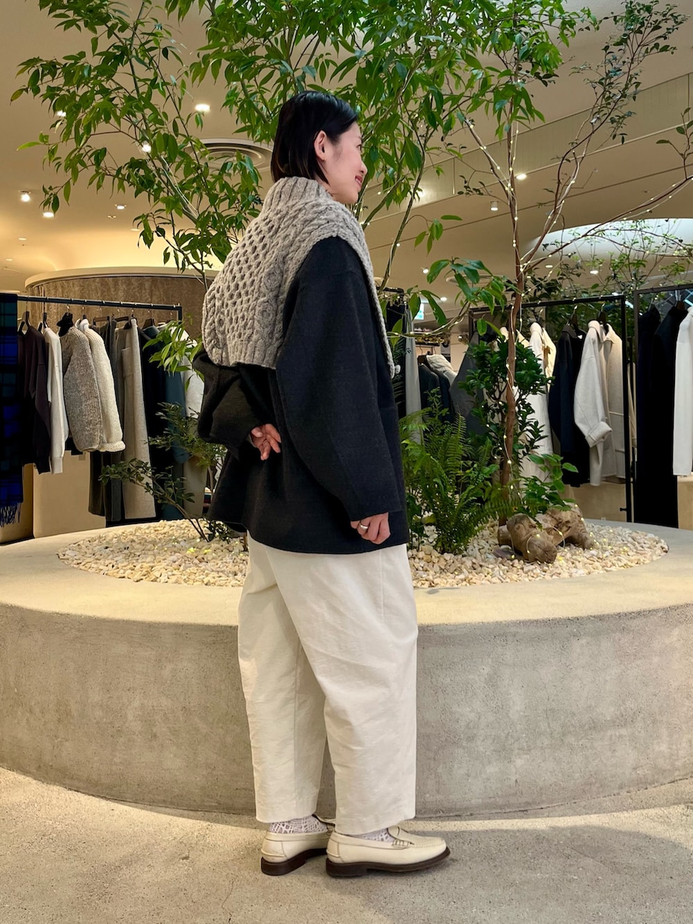 寒くなってきたのでアウターの上に合わせました♪
