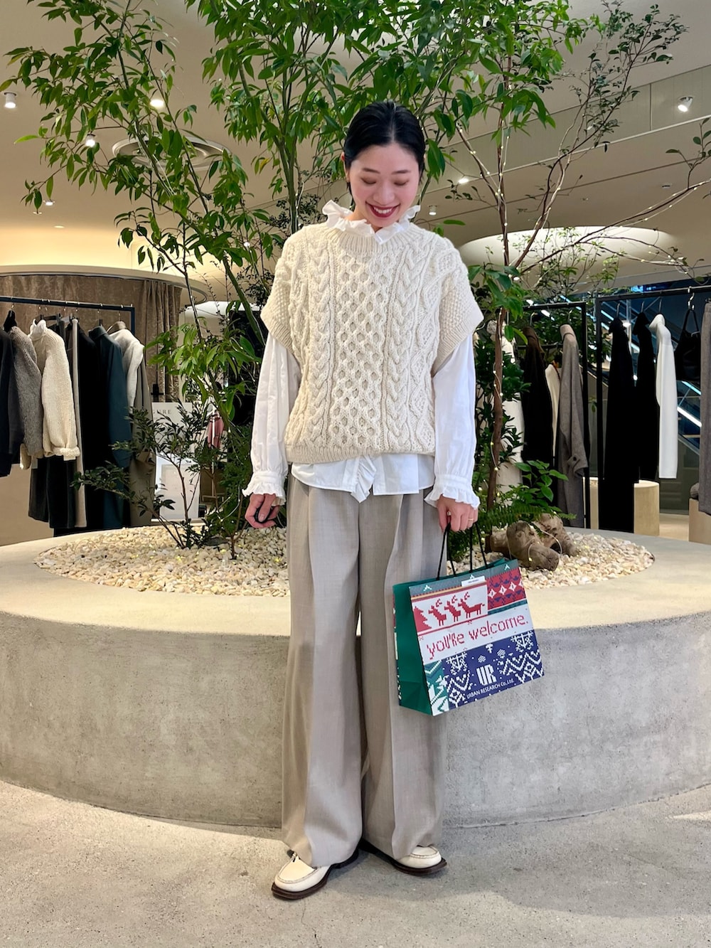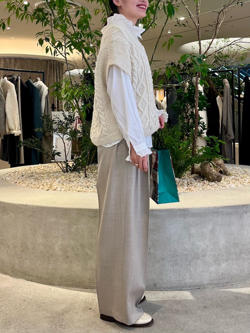今期注目のbrownコート、ロングですが軽くて暖かいいので、ニットはベストを合わせました⭐︎