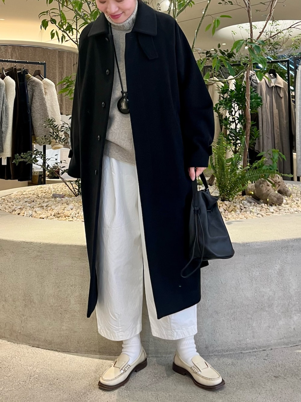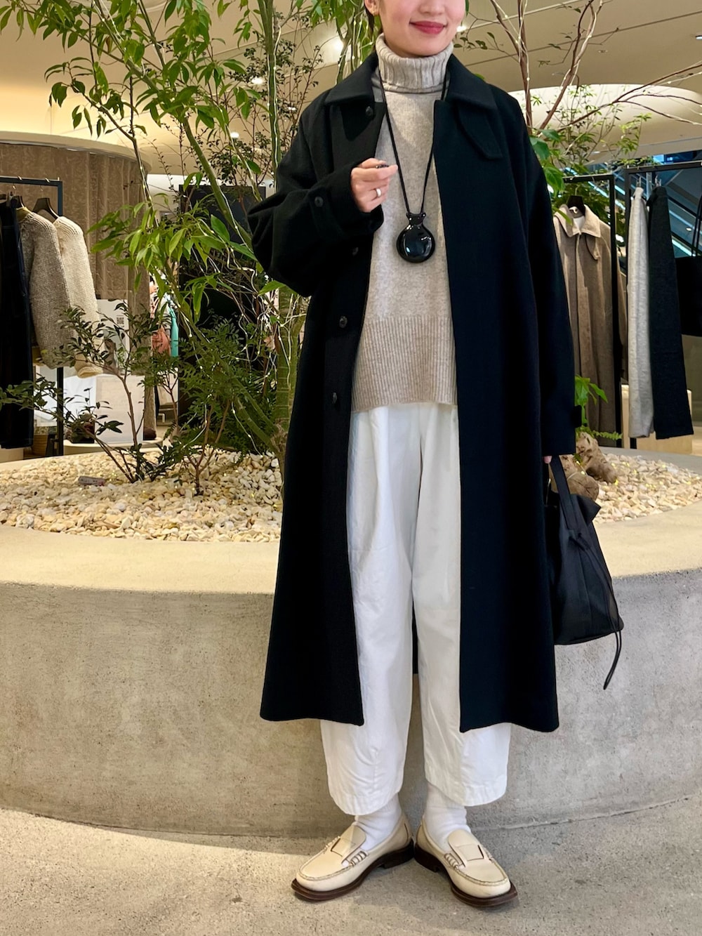 ロングコートにはコットン素材のパンツでもあったかです♪