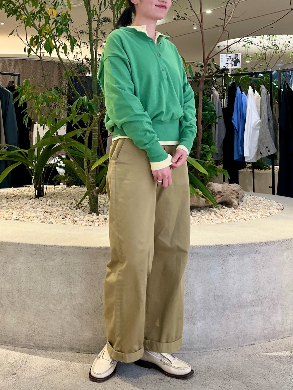 リアルバイのコットンカシミヤヘンリーネックニット、重ね着です♪