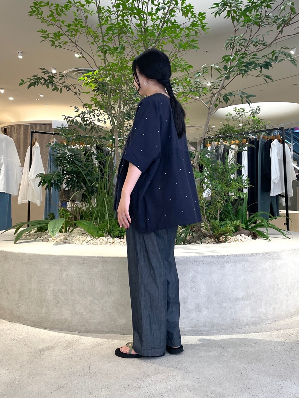 程よいワンポイントのドット刺繍がシンプルになりすぎず爽やかさのある一着で、