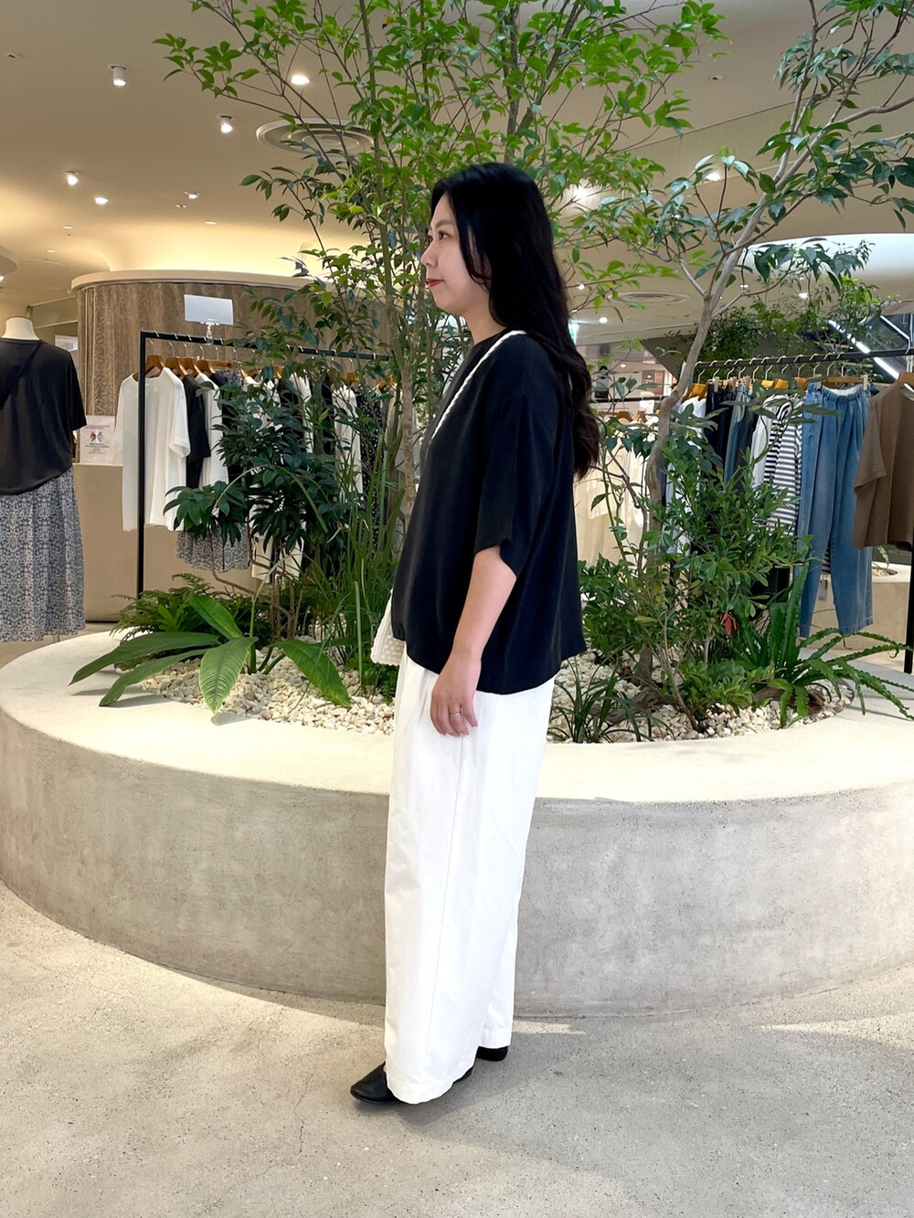 トップスはTシャツの形ですがカットソー生地と違い、トロンと滑らかな風合いでキレイ目なアイテムとの相性も◎