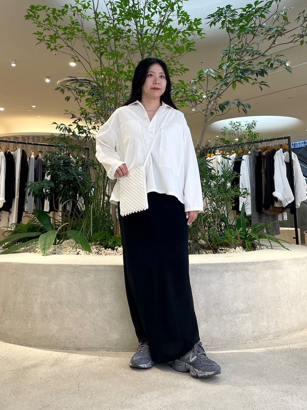 個人的にはインせずに腰回りにゆとりがあるシルエットのトップスと合わせて頂くとキレイなバランスになるのでオススメです。