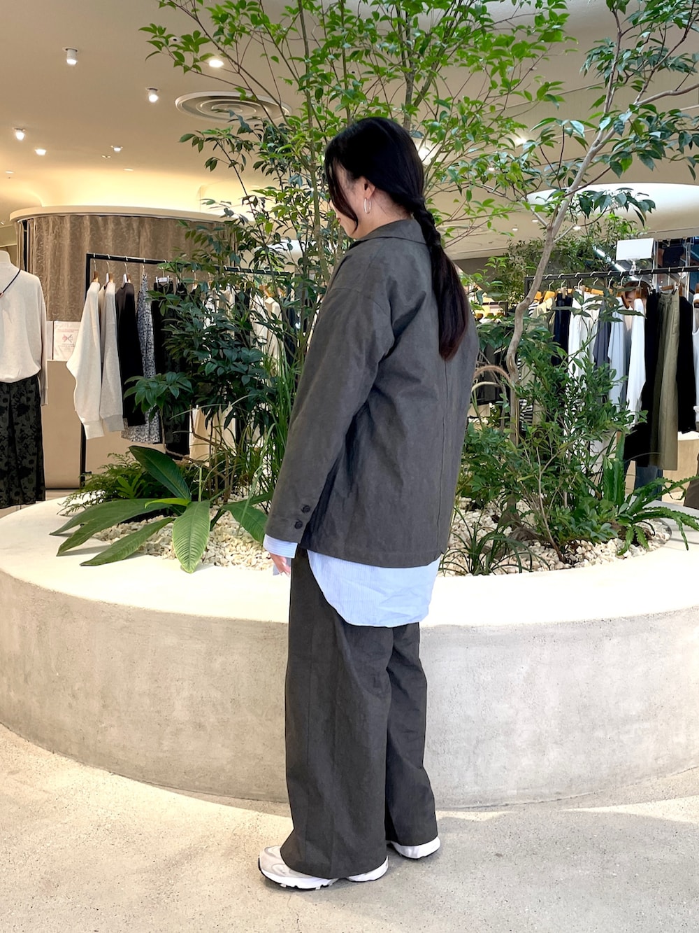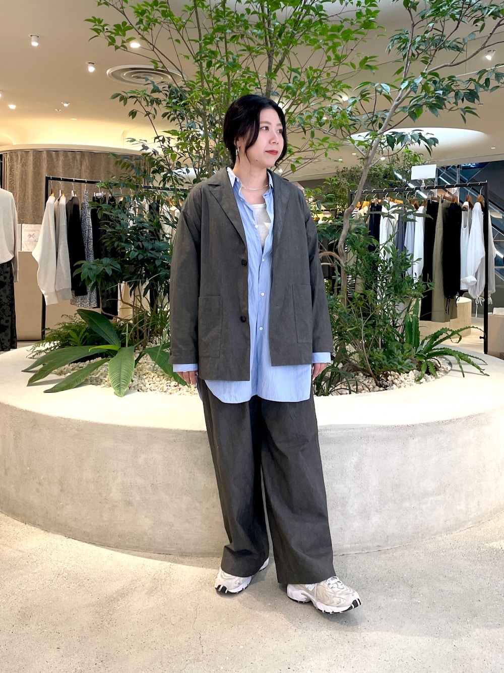 ジャケットは今回の様にシャツの上から着てもまだ少しゆとりがあるサイズ感ですが、体の部分がスッキリ見えして◎