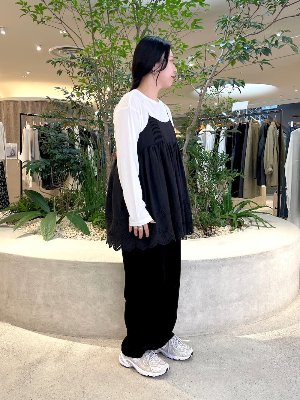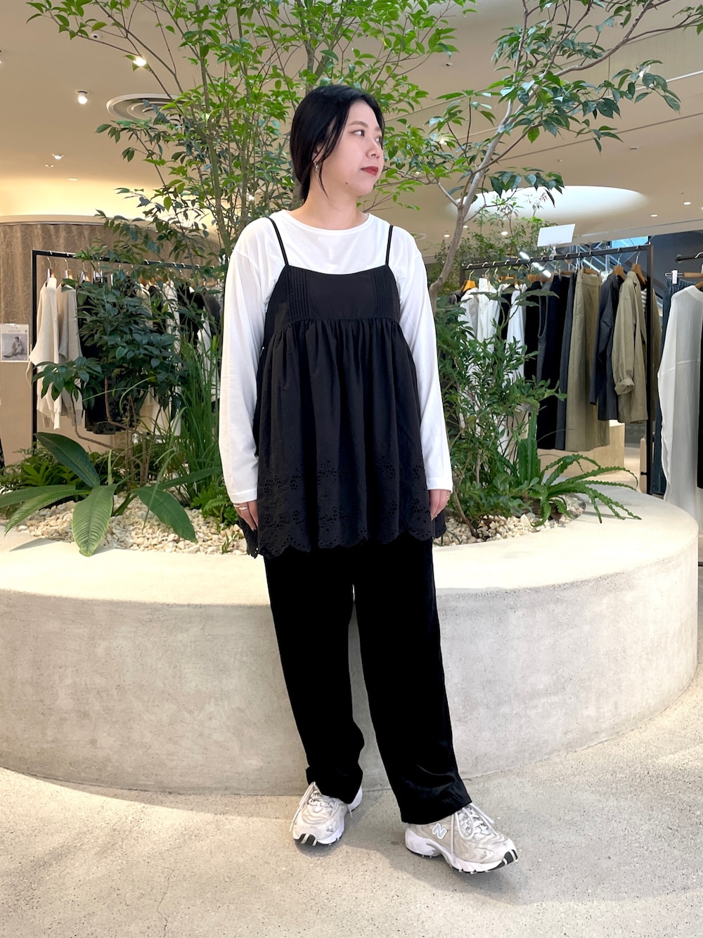 今回着用しているキャミはカットーに重ねるだけでワンポイントになり、雰囲気を変えたい時に丁度いいアイテムでした。
