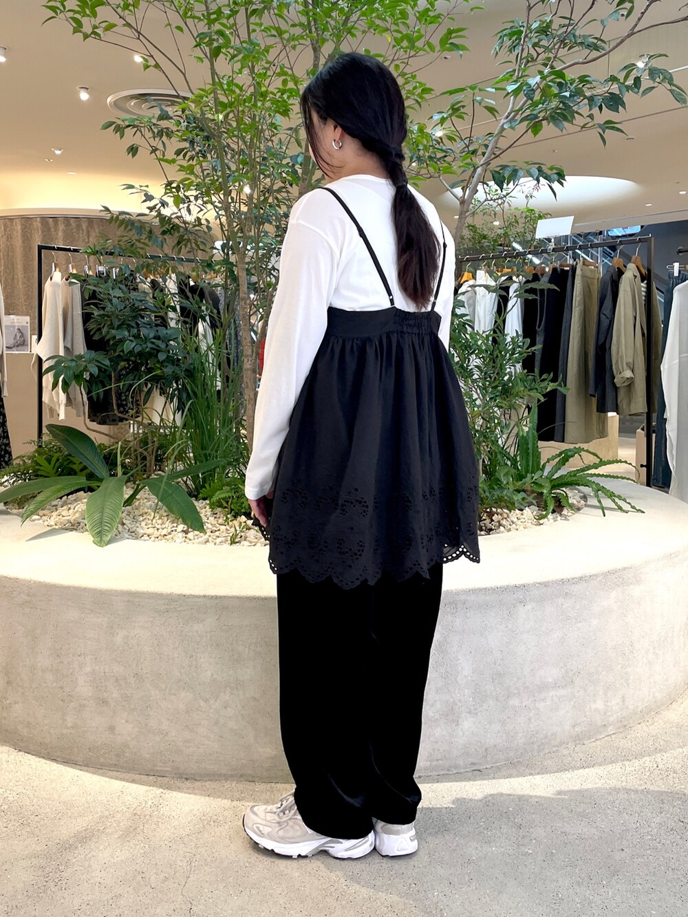 更に上からカーディガンやジャケットを合わせて裾の刺繍を見せるのも可愛くて◎