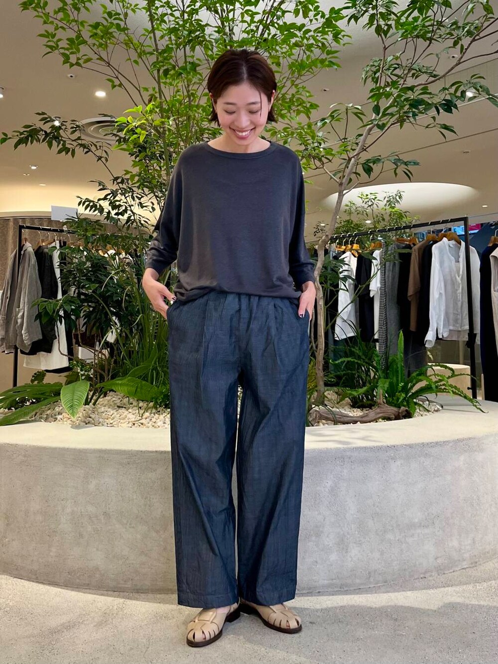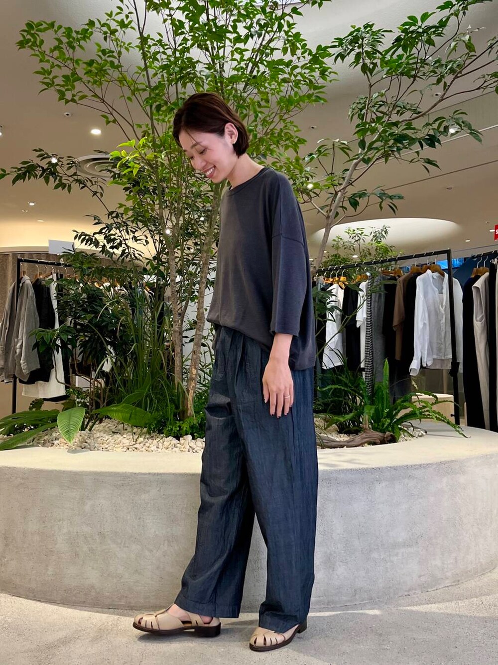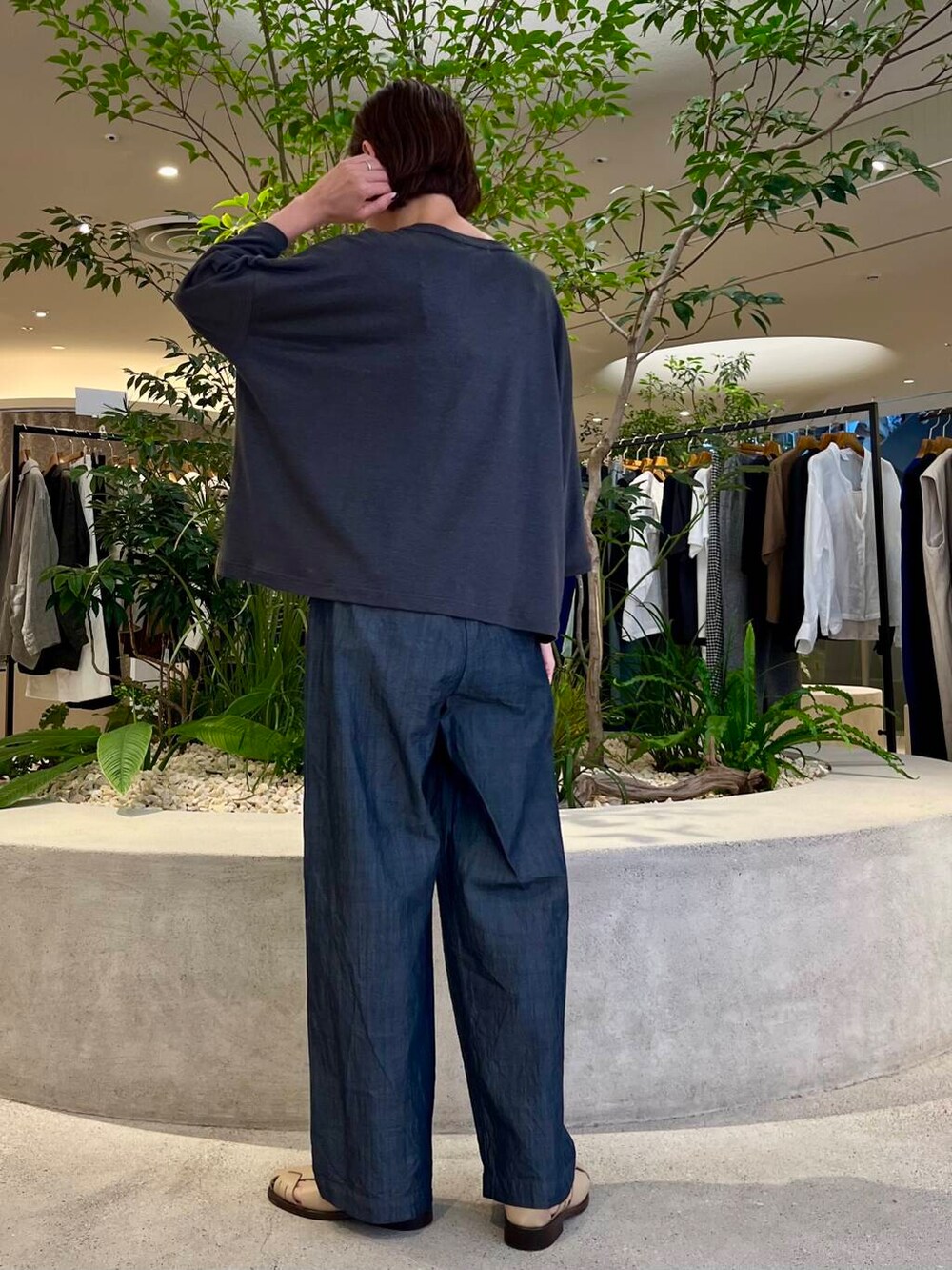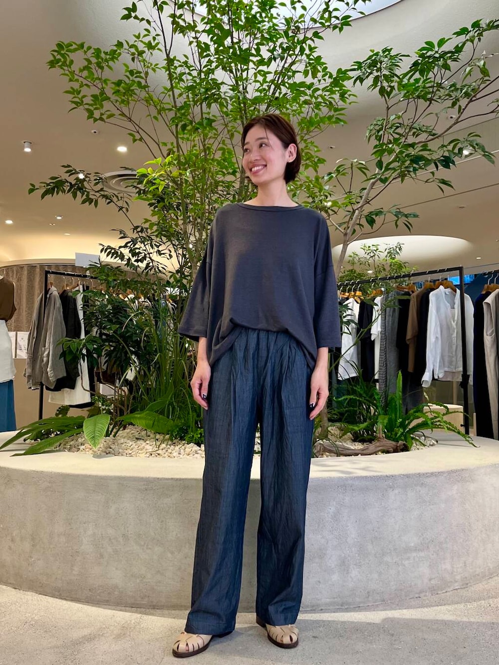 店頭で人気のリネンワイドカットソーはコットン素材よりも涼しく