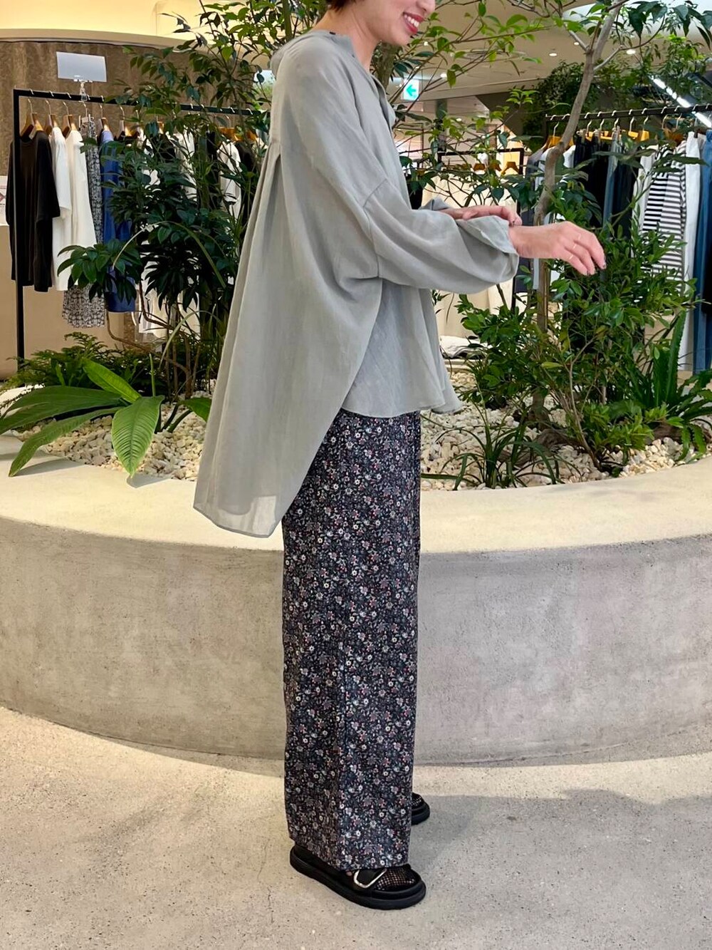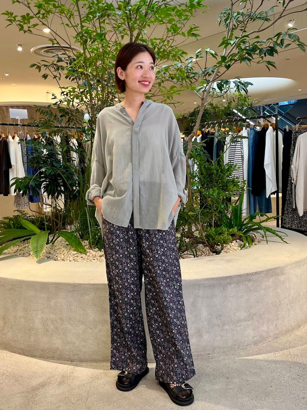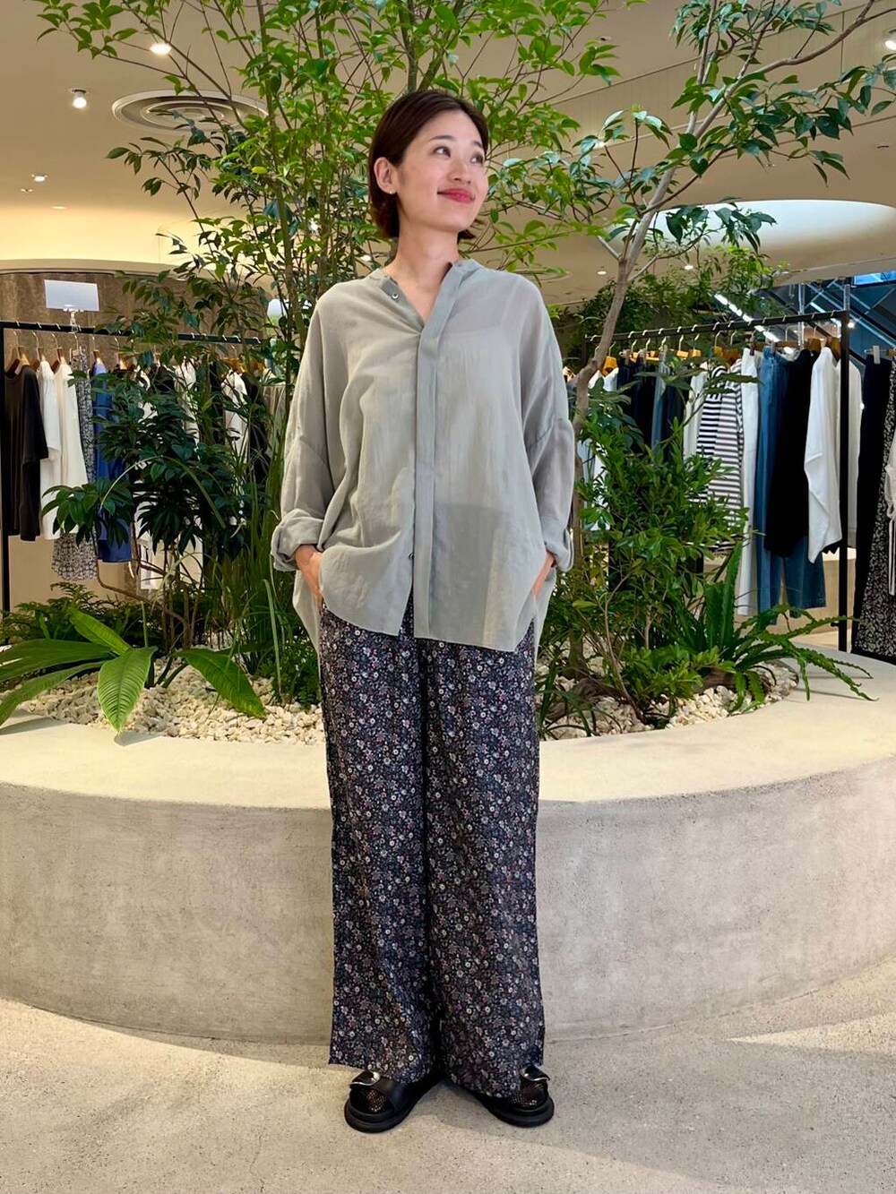 ワイドなデザインのバックタックワイドシャツは女性らしいデザインがお気に入りです。
