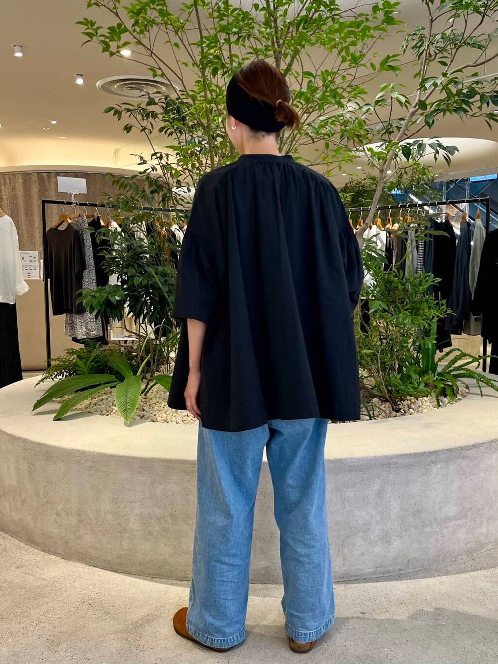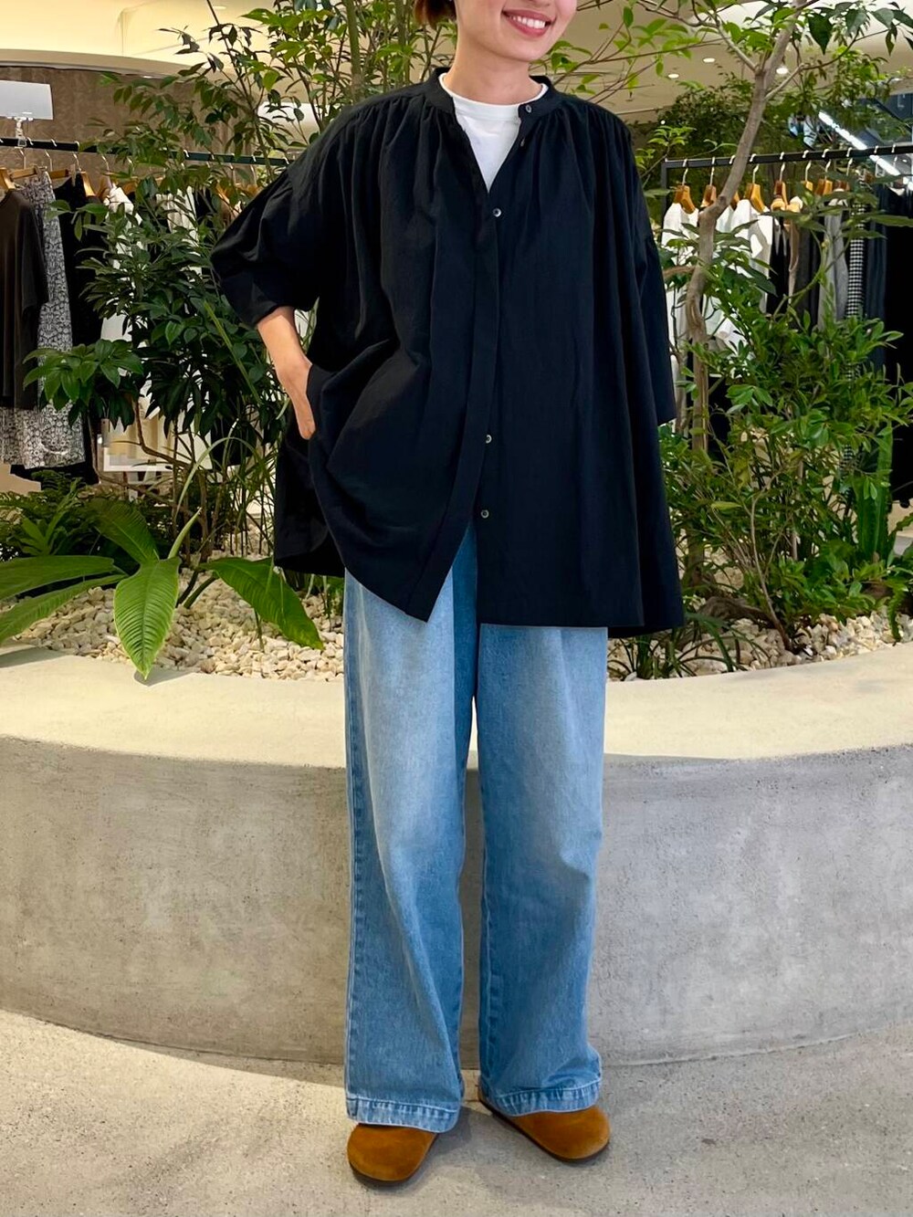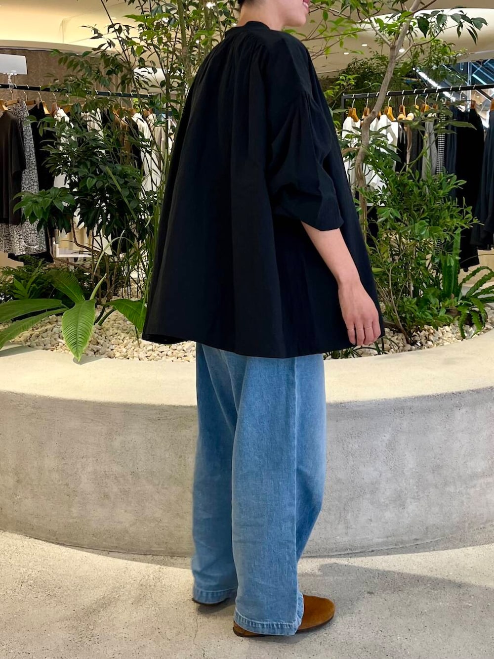 コットンギャザースタンドカラーブラウスは生地がしっかりめで