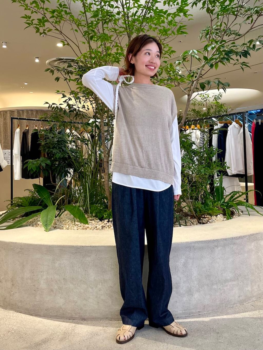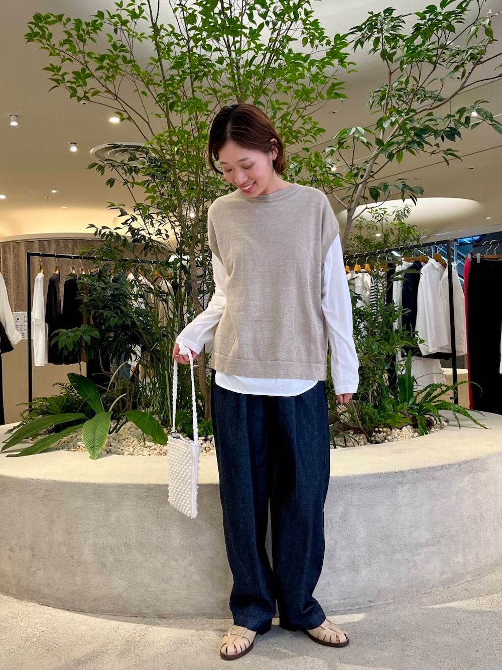 リネンノースリーブニットもそろそろ半袖や長袖のカットソーを合わせて♪