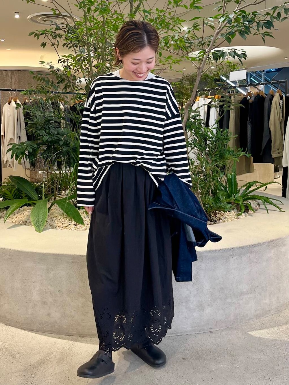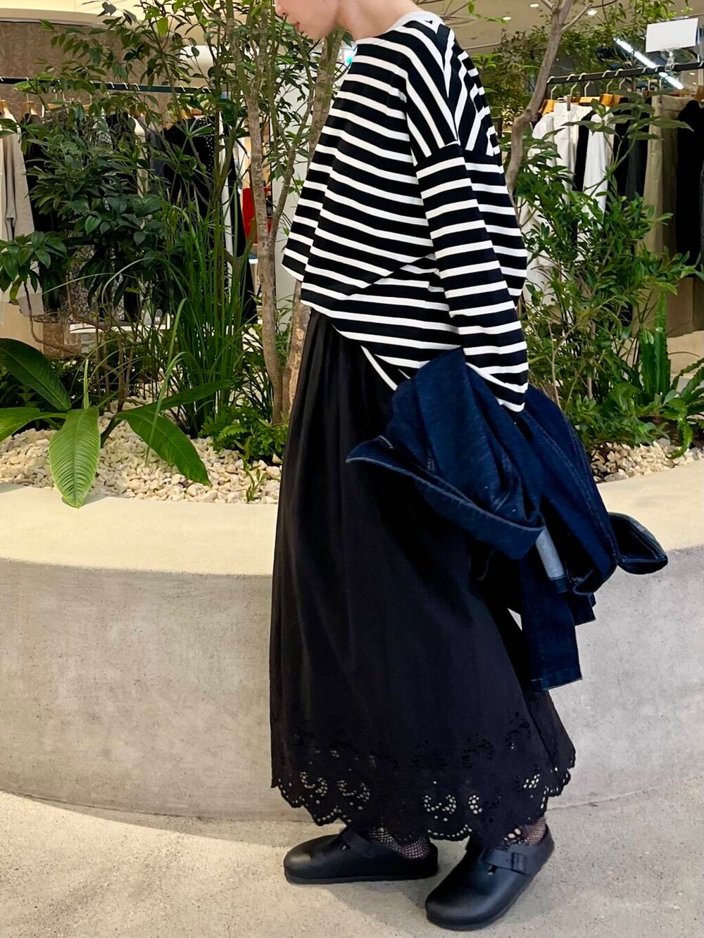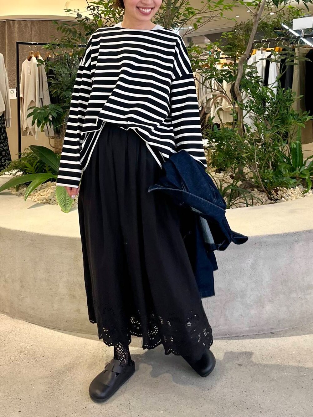 甘くなり過ぎないようボーダーのカットソーと合わせました。