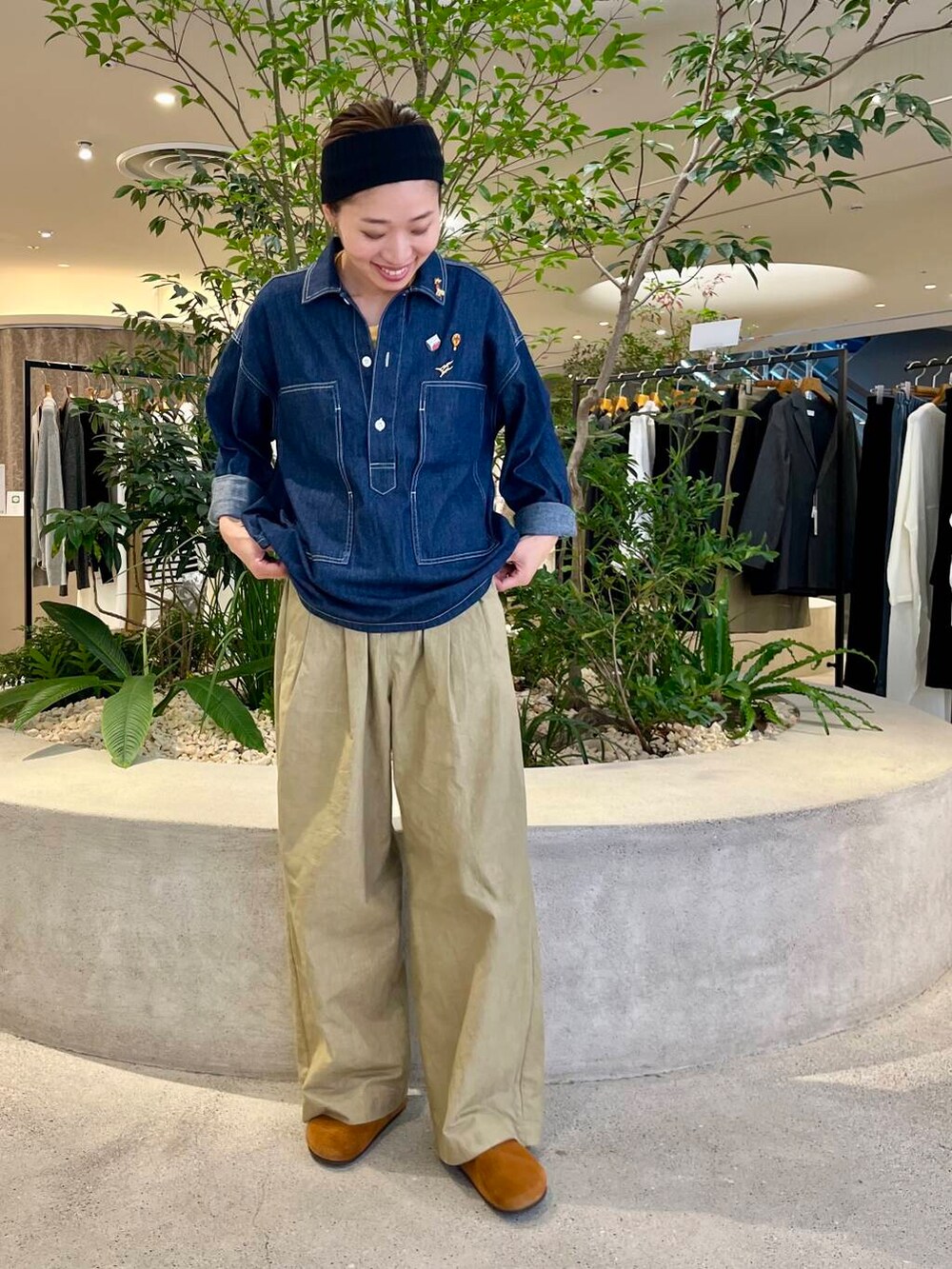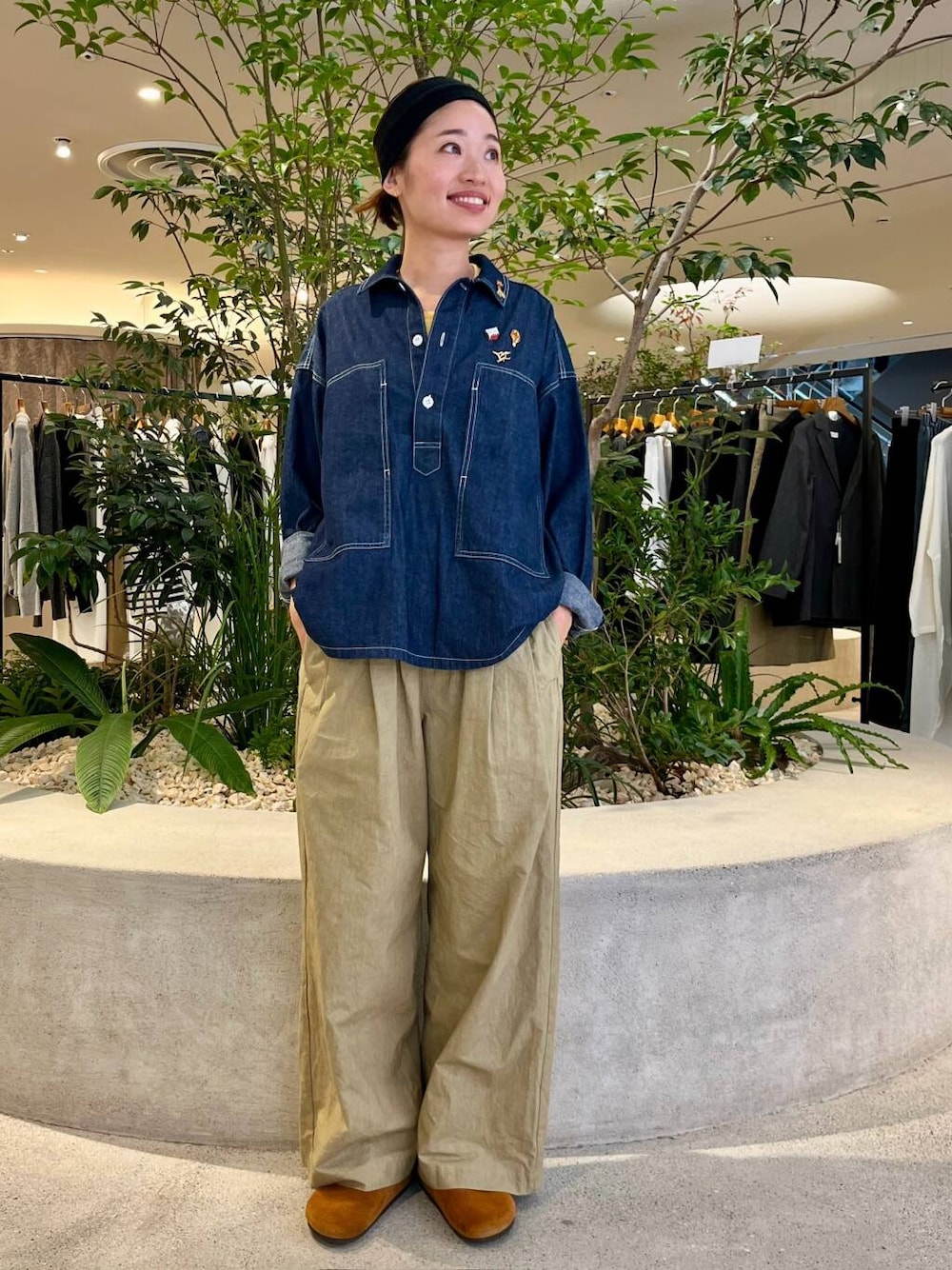 デニムプルオーバーシャツはデニムonデニムで合わせたり、