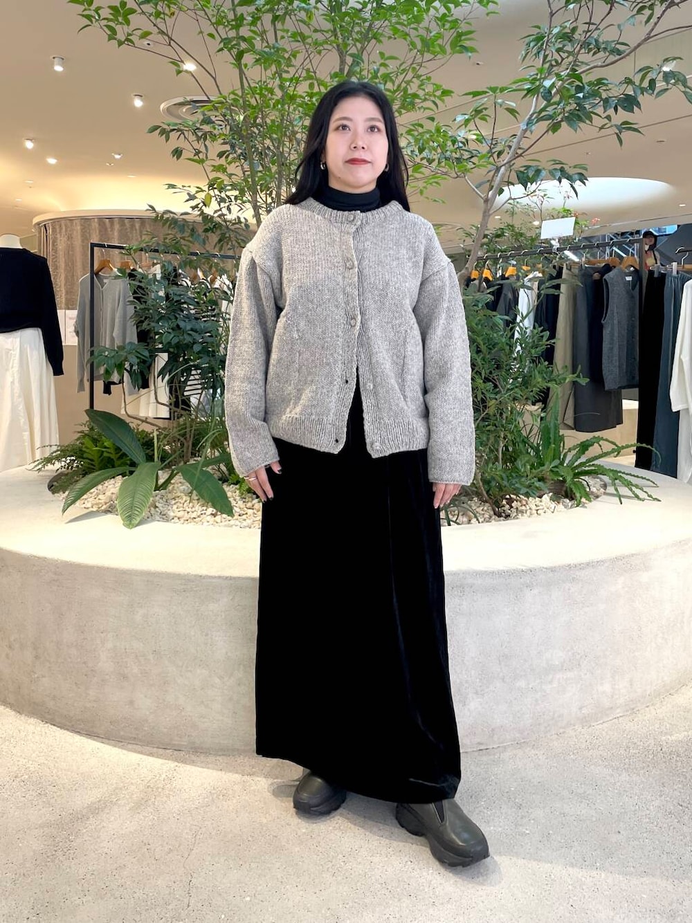 スカートはストレスフリーなコーディネイトに足して頂くだけでお洒落素材感なのに楽ちんで◎