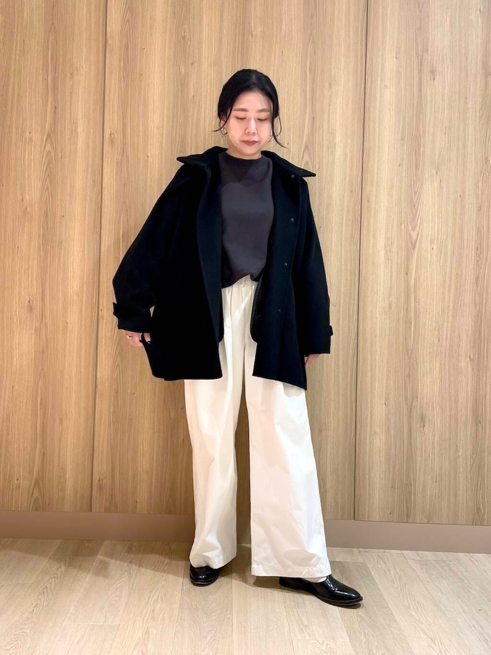 今回は個人的におすすめなスタンドコートのショート丈を着てみました。