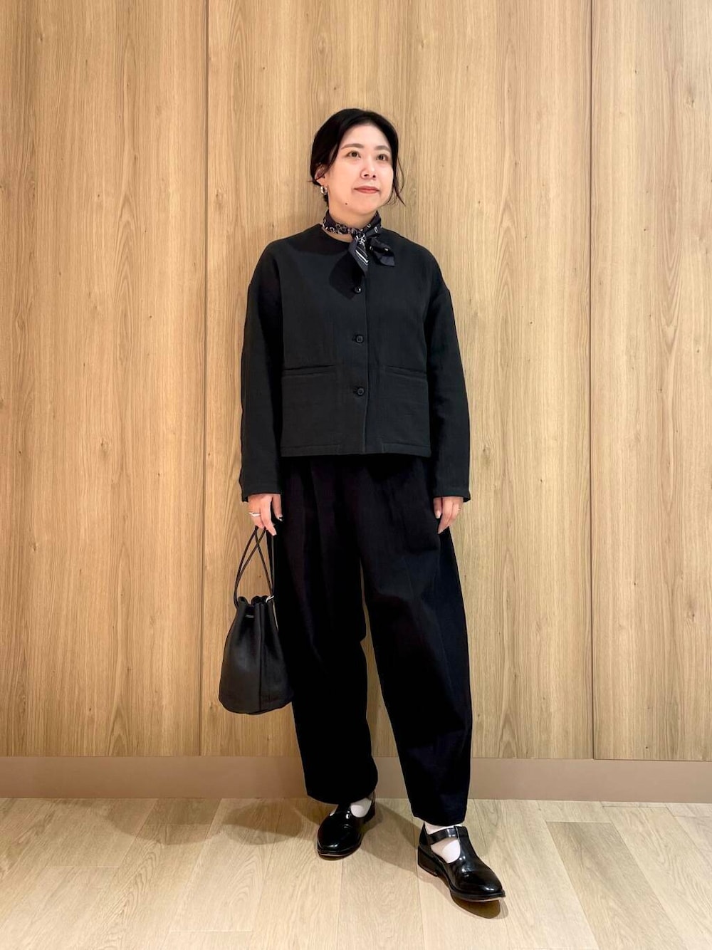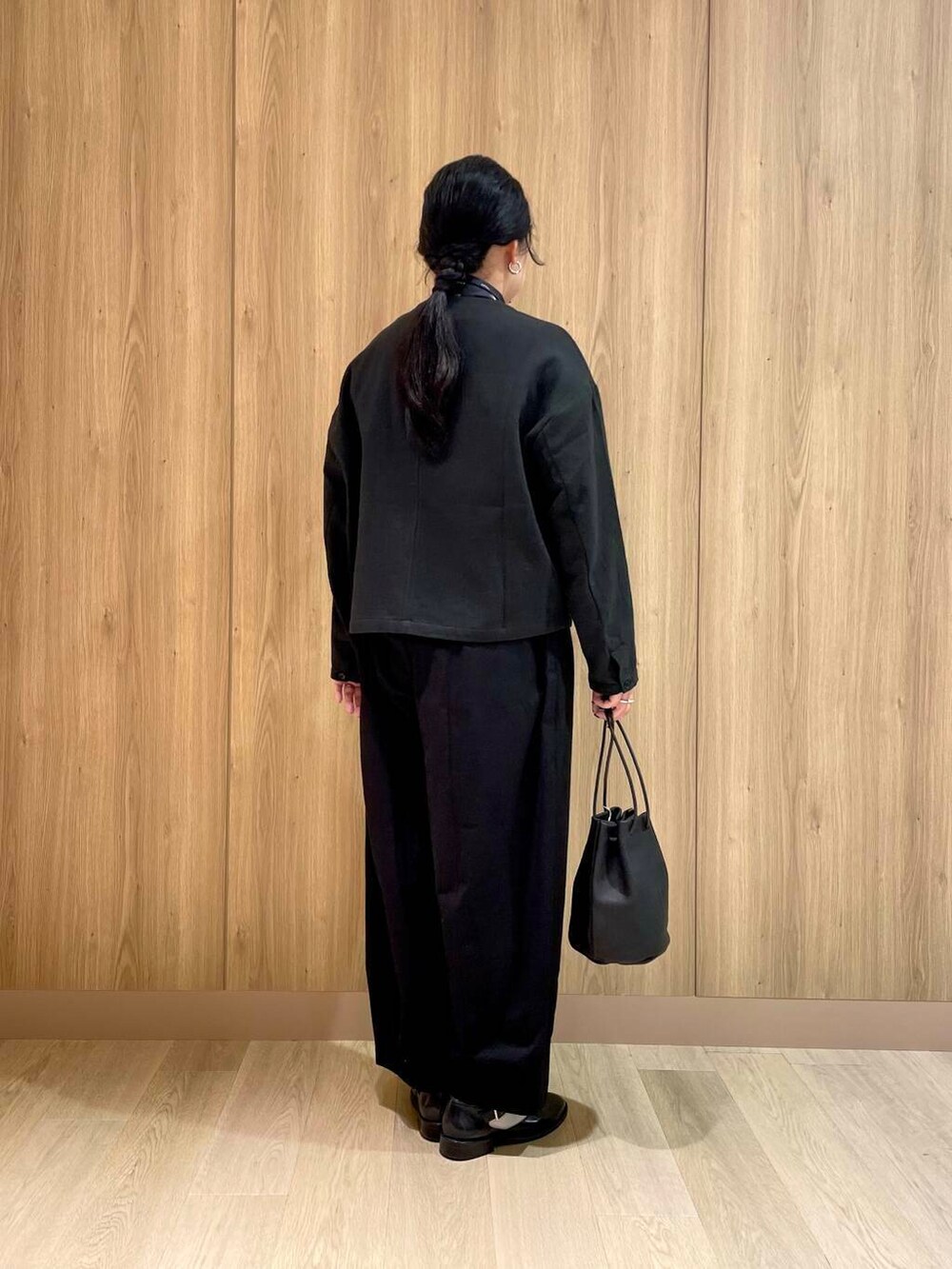 ジャケットが長すぎない丈感なので、ボトムもデザインがあるボリュームシルエットを合わせてシンプル過ぎないシルエットが◎