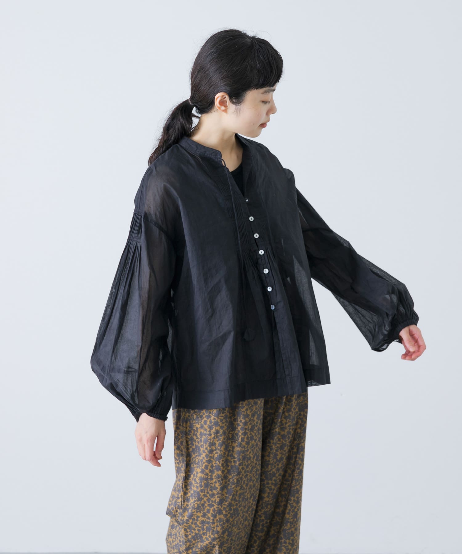 コットンオーガンジー素材のブラウスは、ボリュームのある袖のデザインが可愛い一着です。