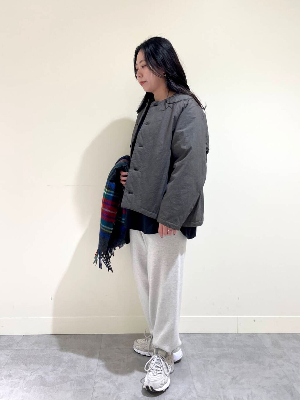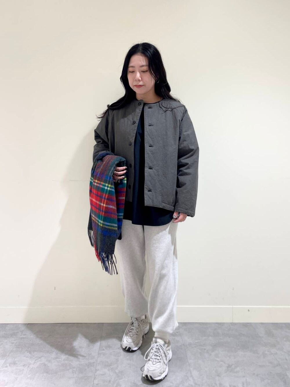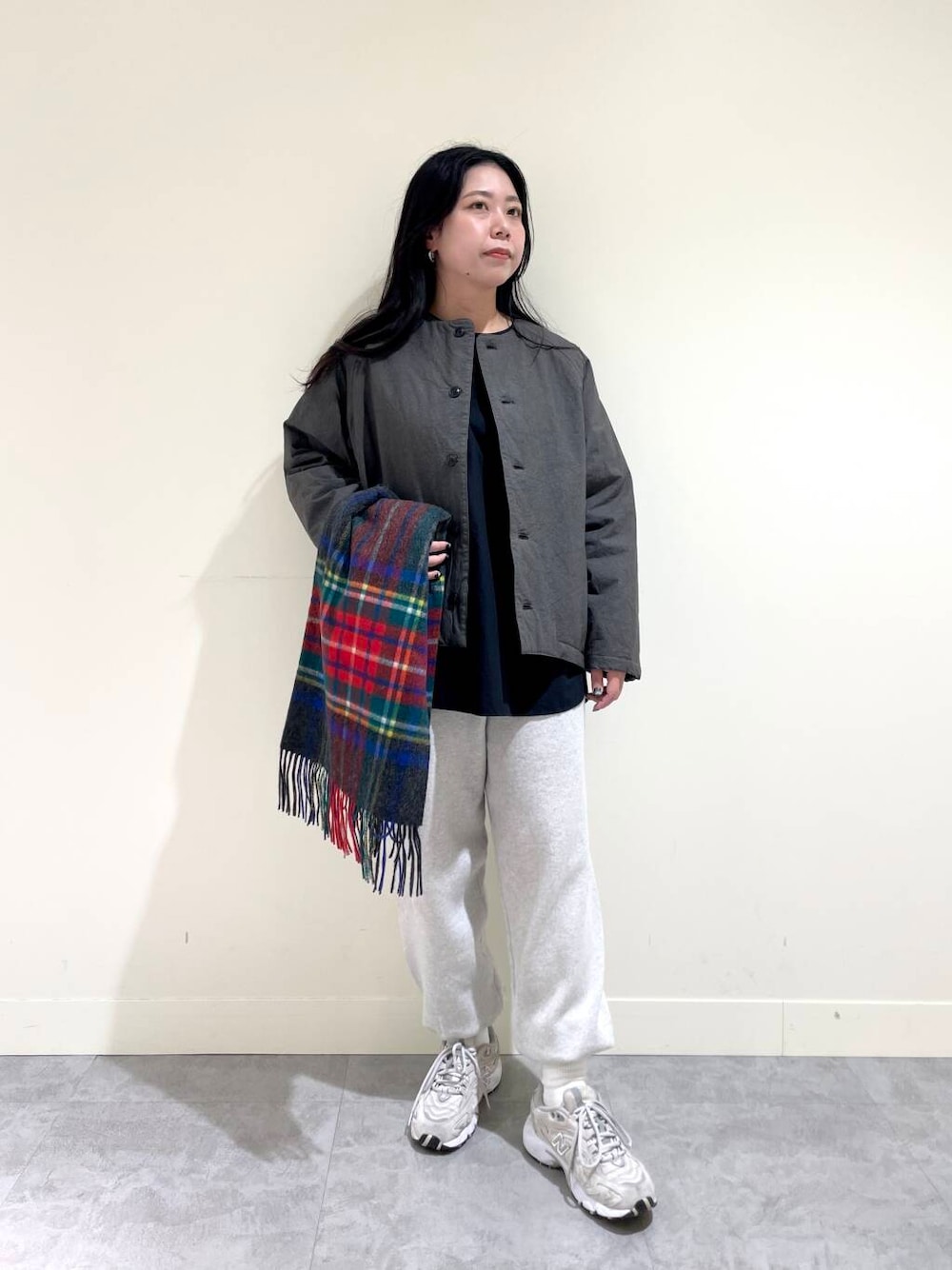気温も下がってきてそろそろストールがいる時期になるのでシンプルなスタイリングにチェック柄でワンポイントに♪