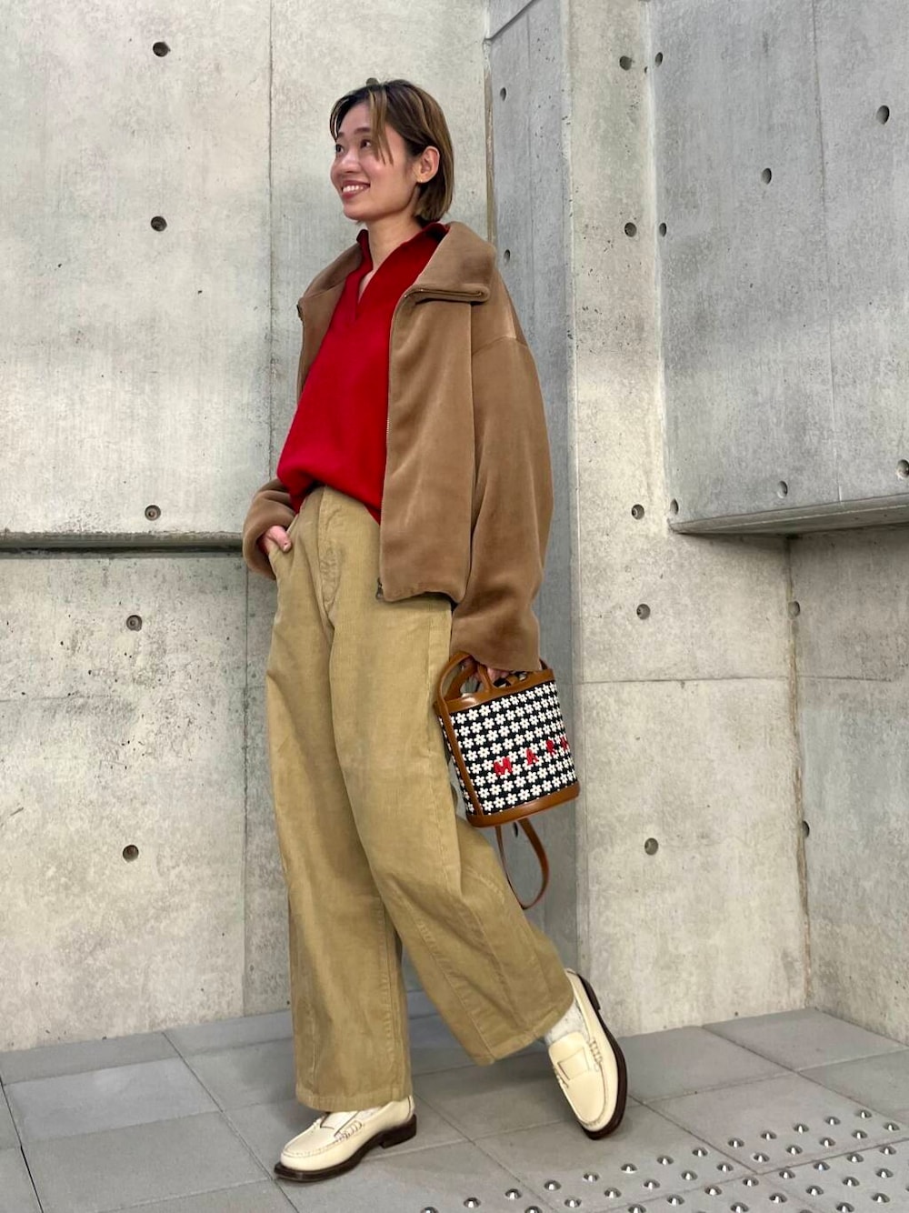 カシミア混強縮キーネックニットプルオーバーのREDと合わせて♪