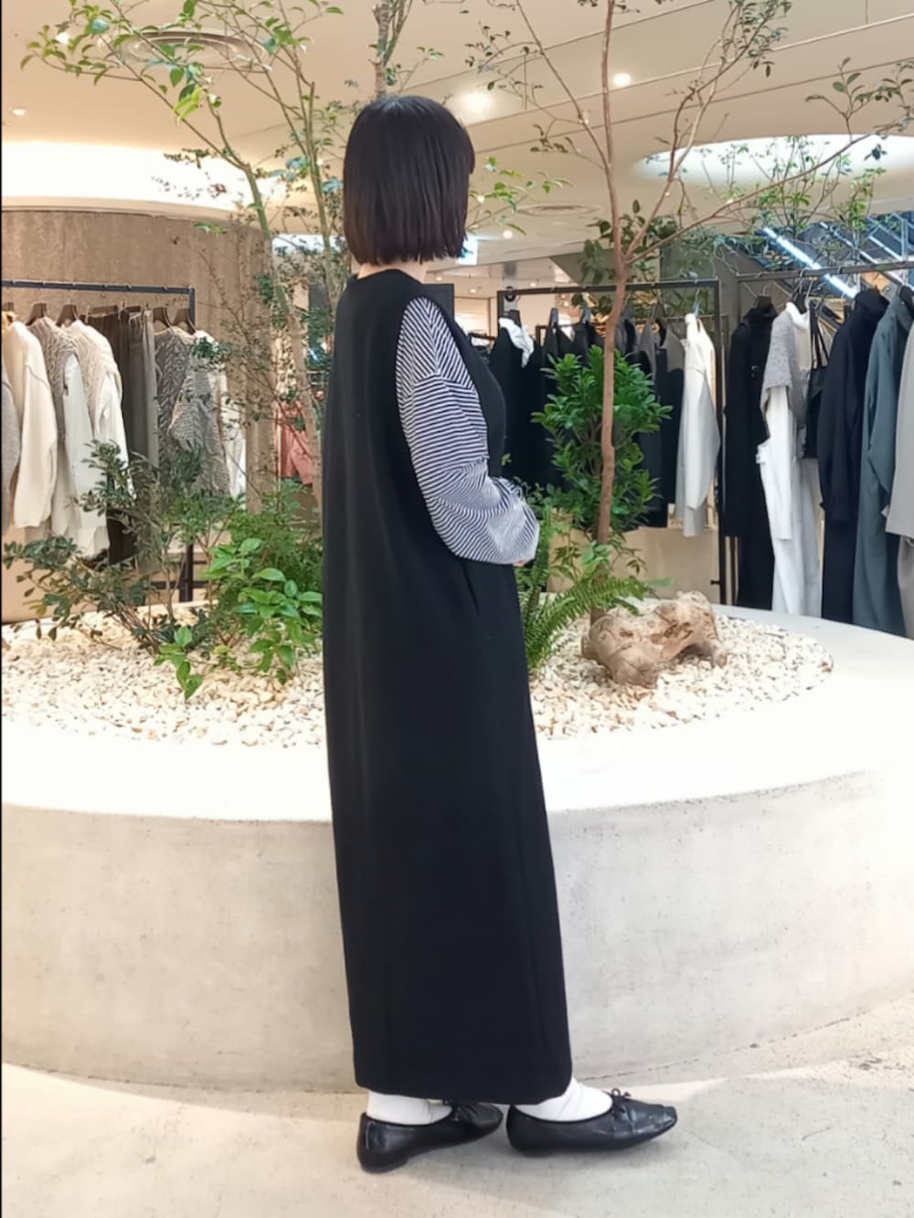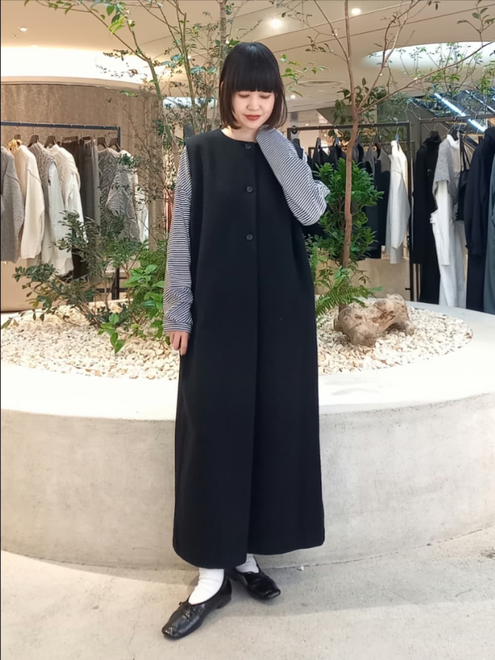 インナーにタートルやブラウスなどを合わせて、お好みのスタイリングをお楽しみください。