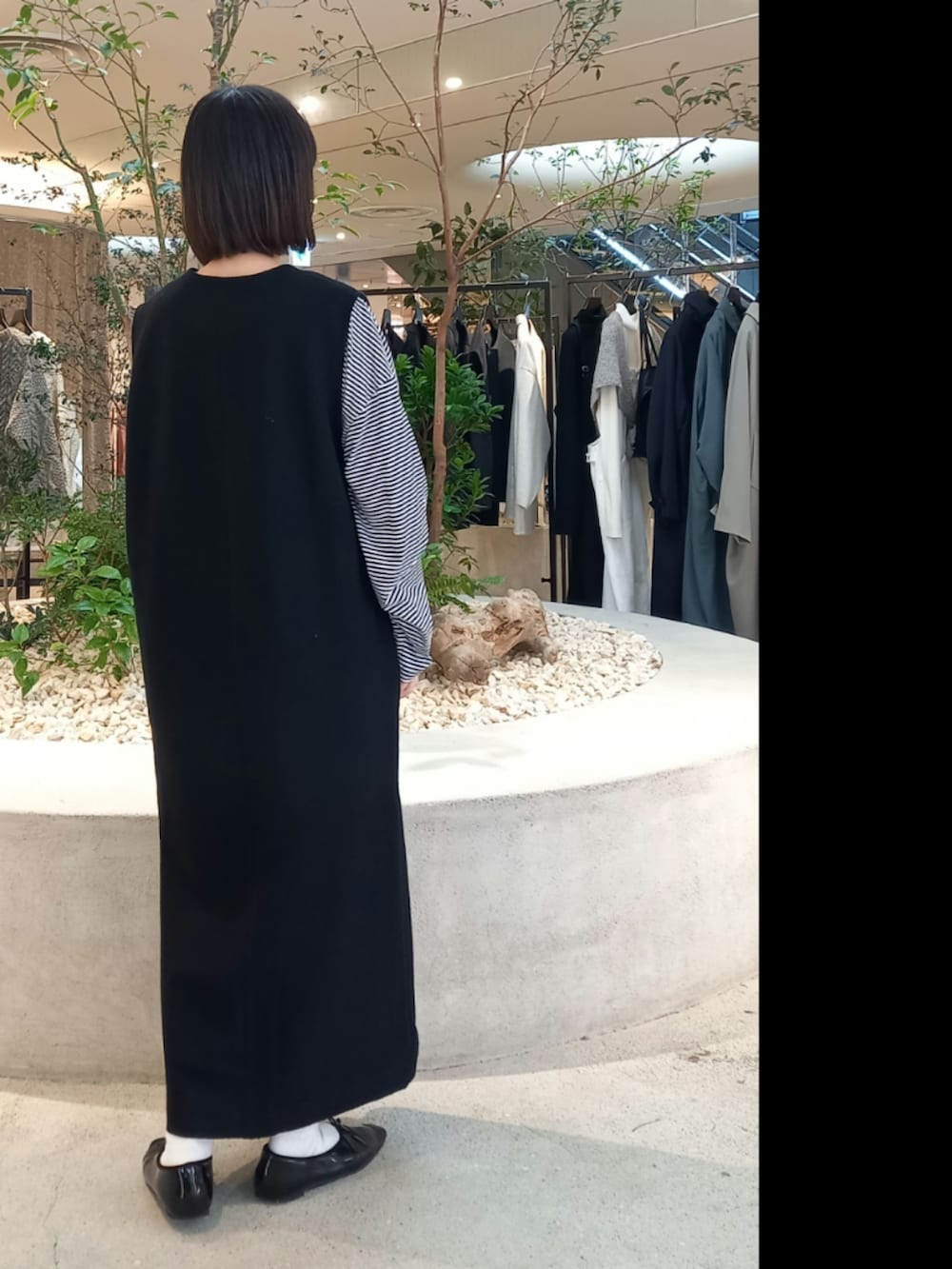 ウール素材のジャンパースカートは、IラインのスッキリしたシルエットでBLACKのカラーのみとなっております。