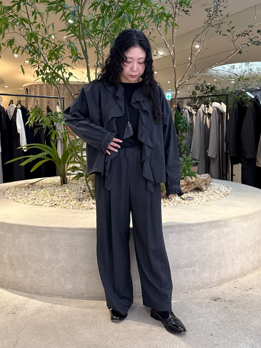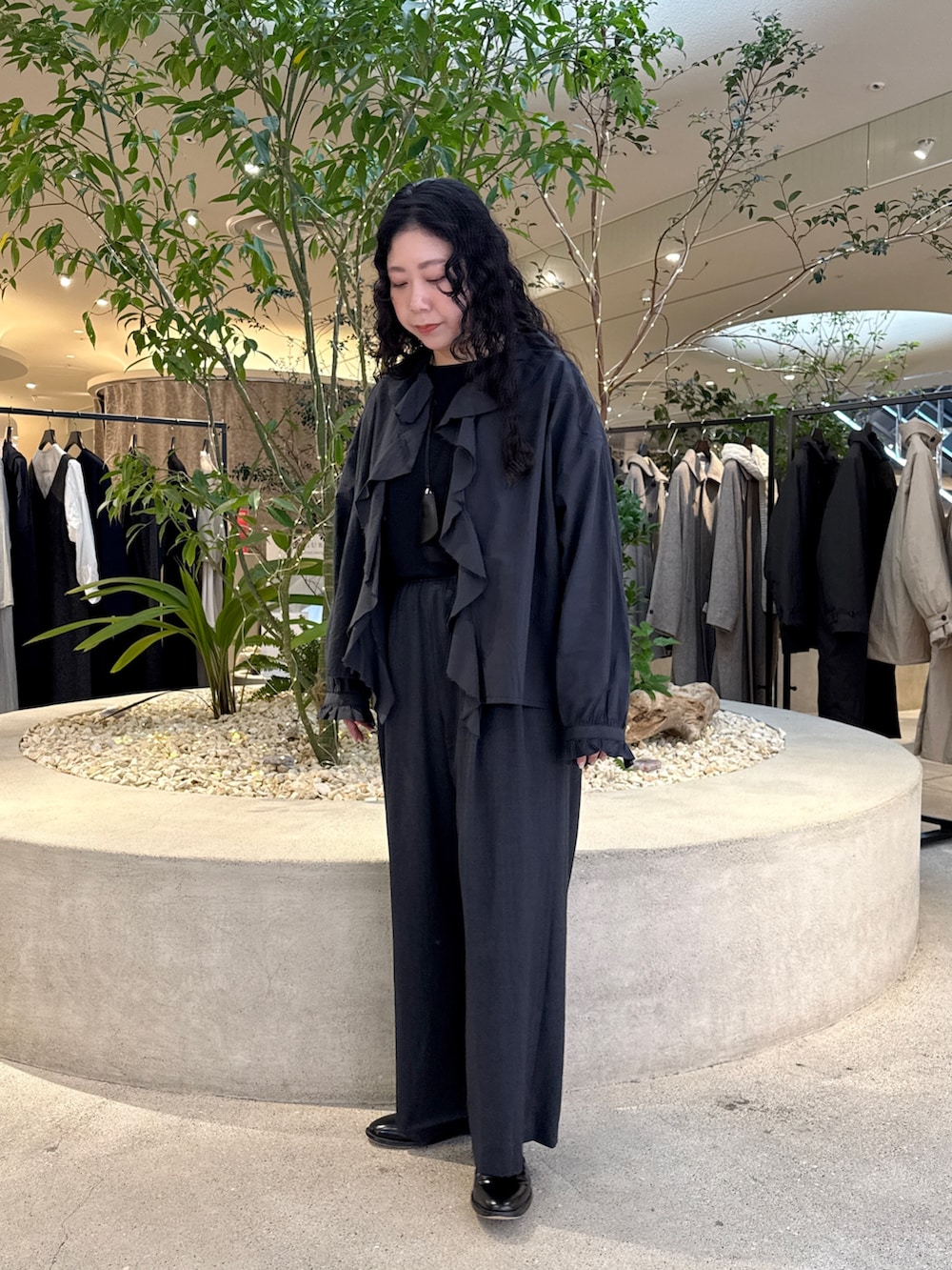 春のコーデも見越してフリルのブラウスを購入しました!甘くなりすぎるかなと思ったのですが、羽織で着る事で骨格ストレートの私はしっくりきました!袖口のボタンはいつも外してます。