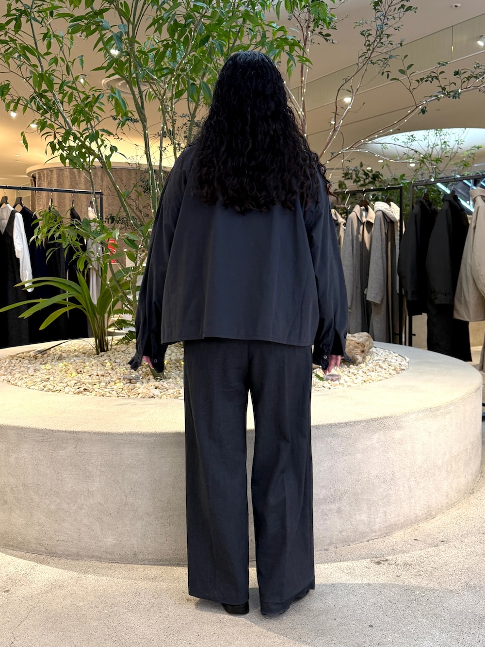 パンツはオールマイティーに使える一着あると何にでも合わせれる便利なアイテムです。スラックスっぽい見た目ですがウエストゴムでストレスフリーで着用できて◎