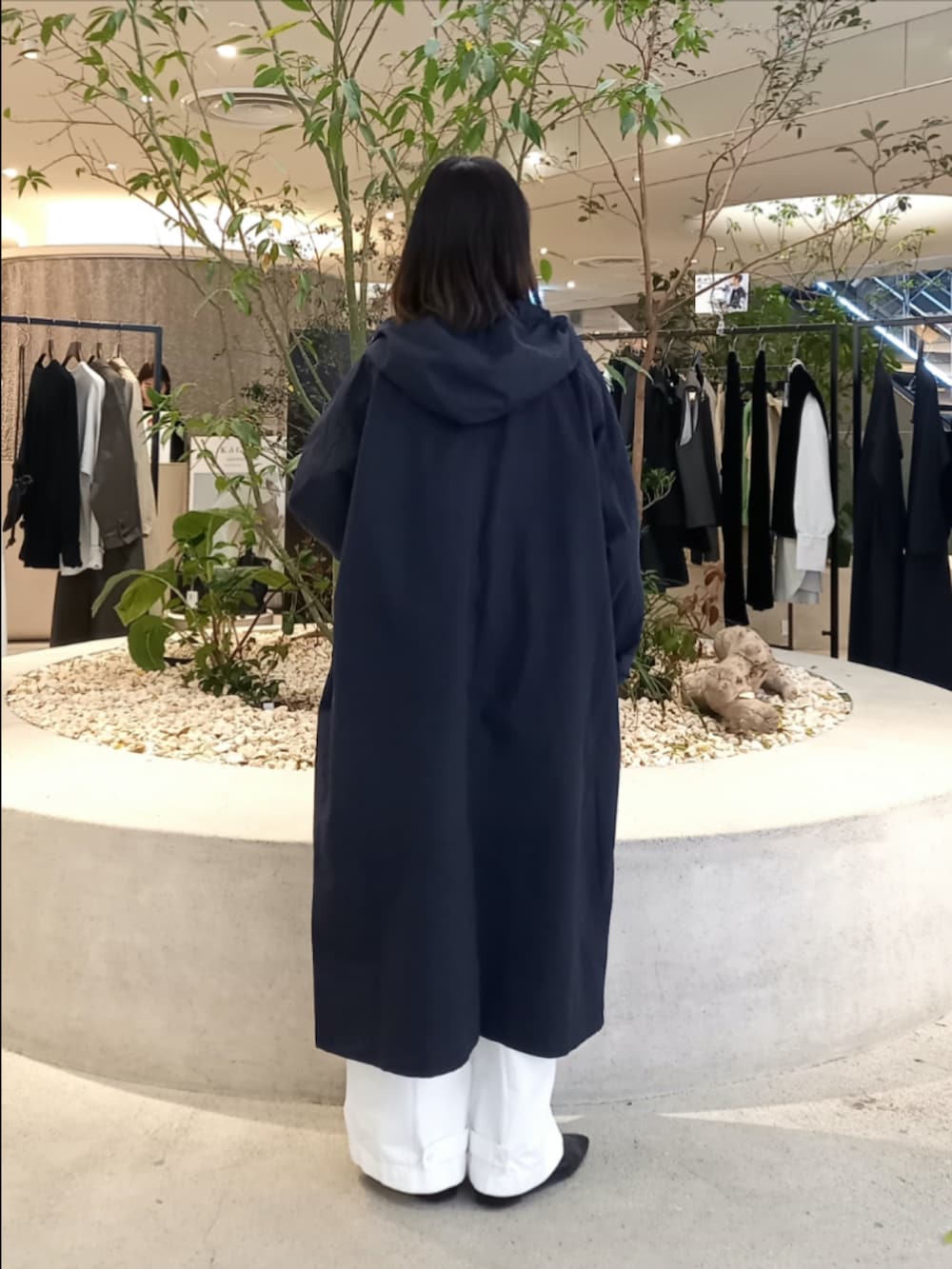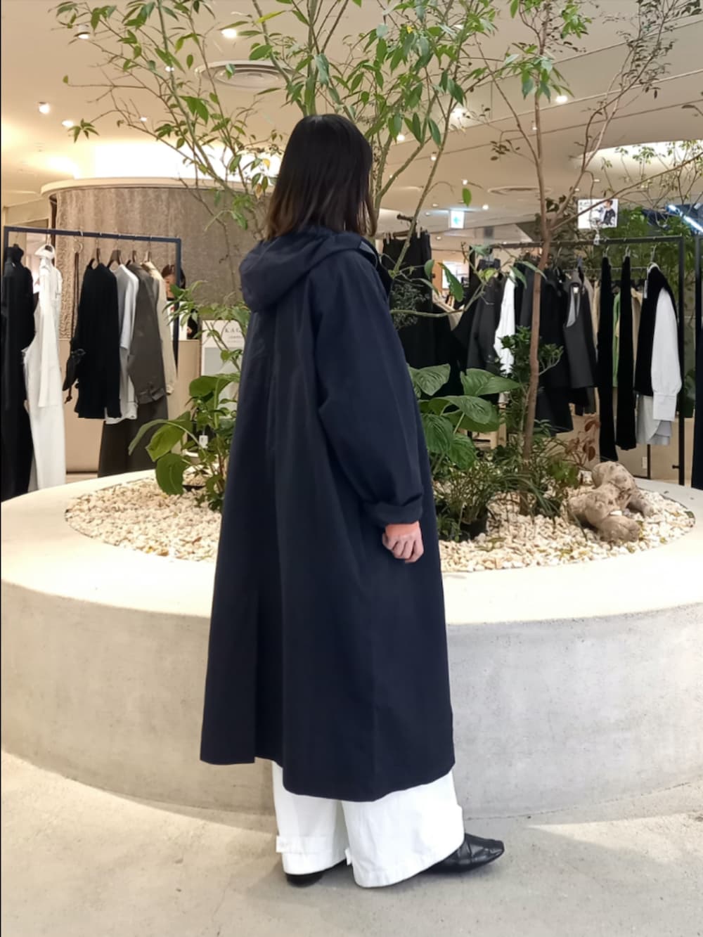 フード付きのラグランコートは、綿生地に撥水加工を施していて、小雨程度の水ははじいてくれるのと汚れもつきにくい優秀アウターです◎