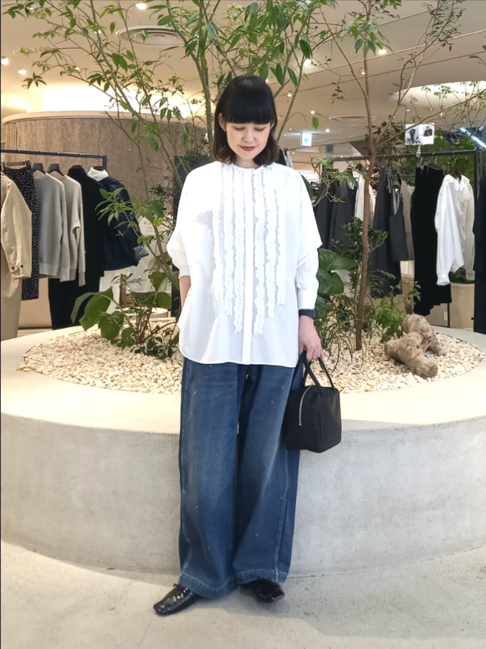 春らしく白シャツとデニムのシンプルなスタイリングに🌼
