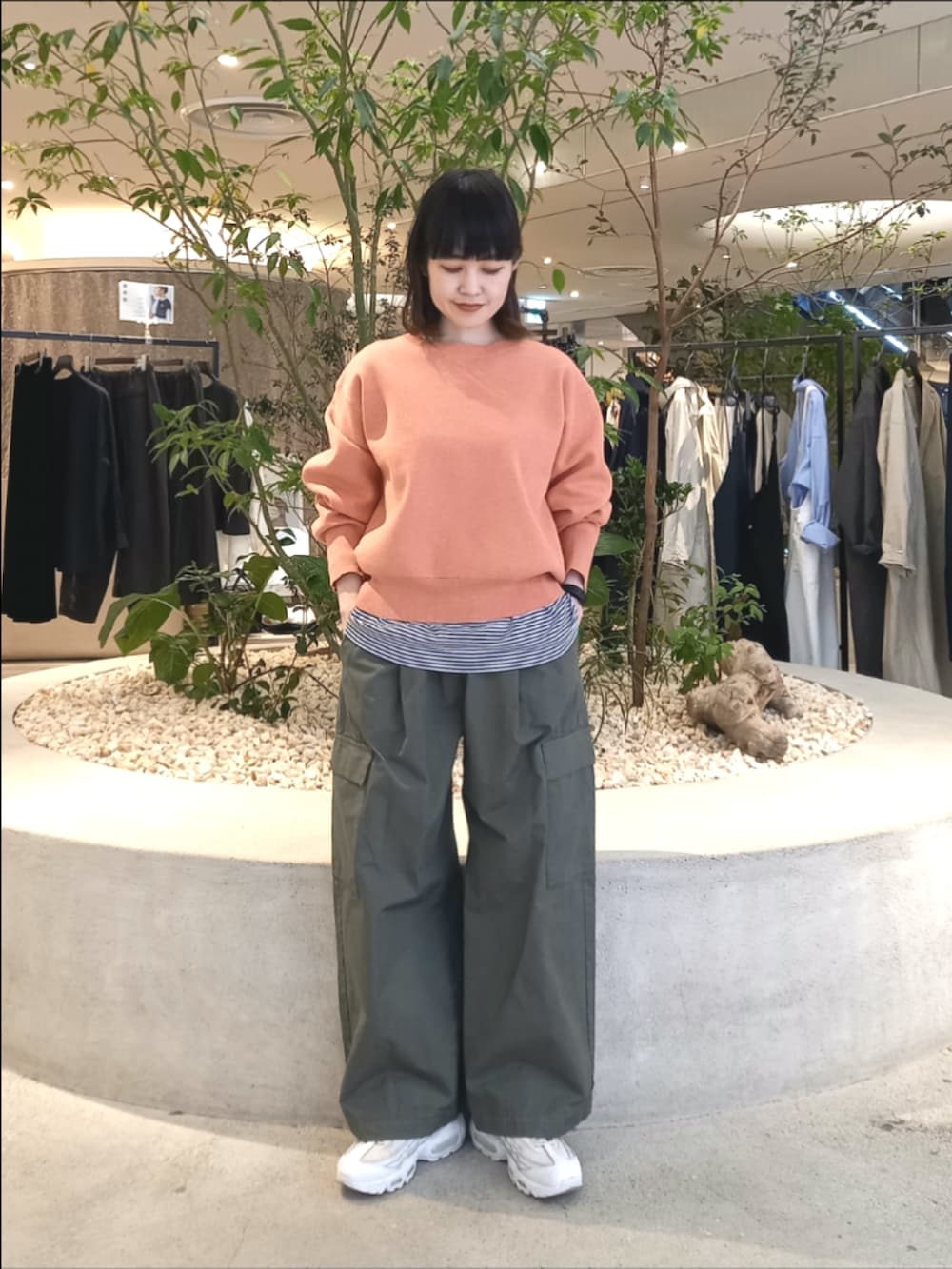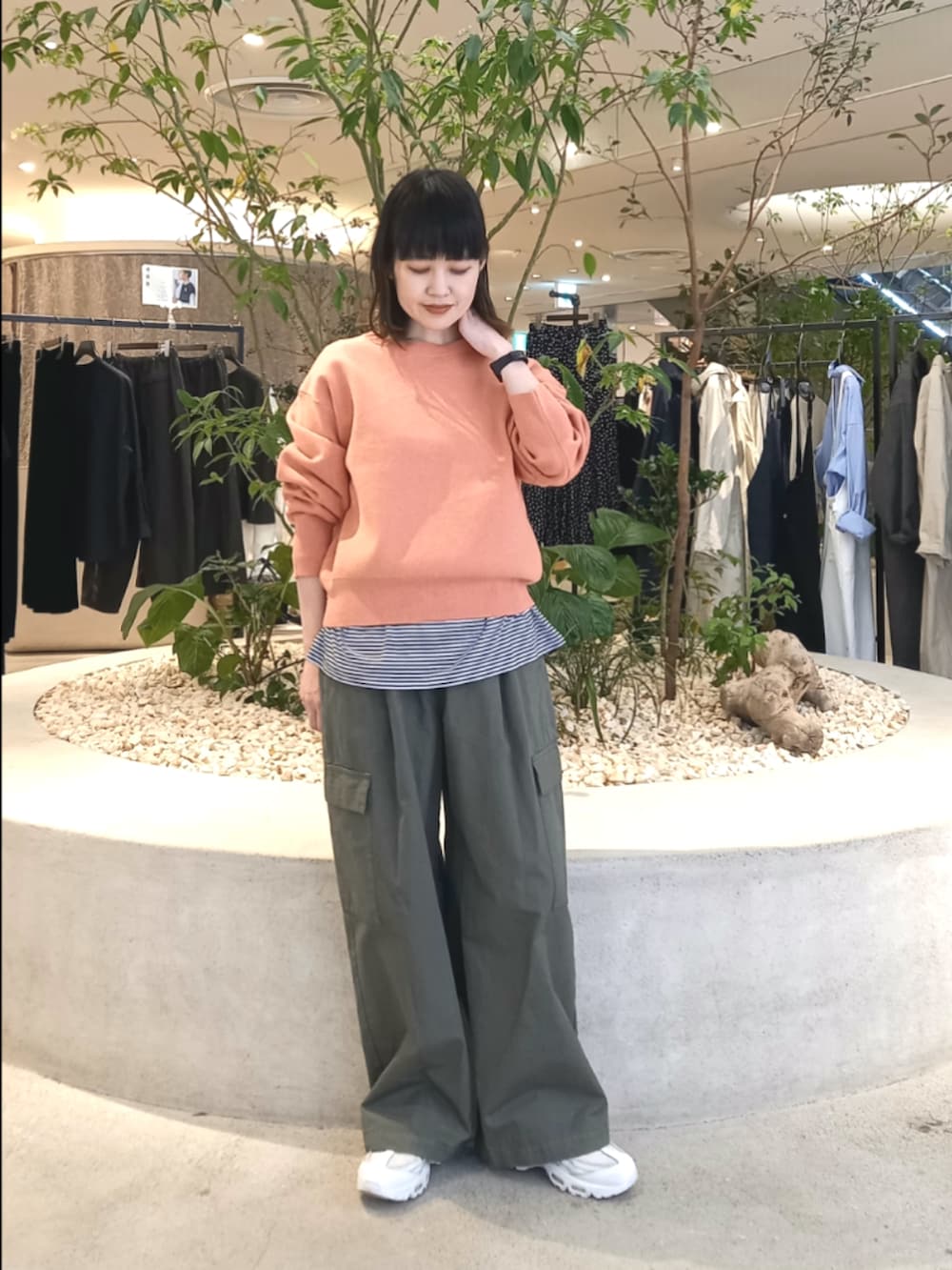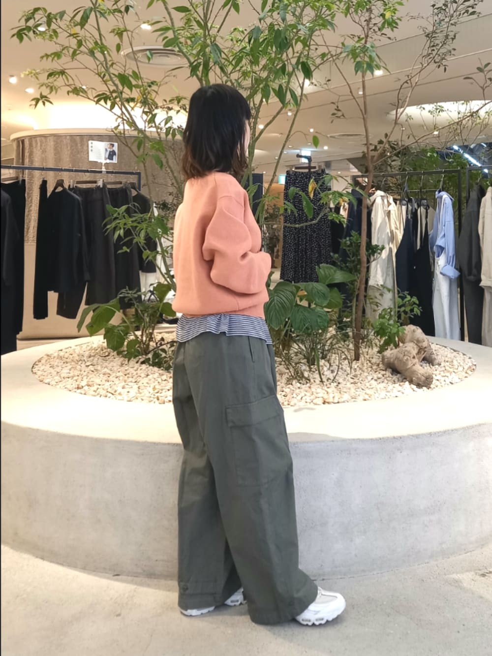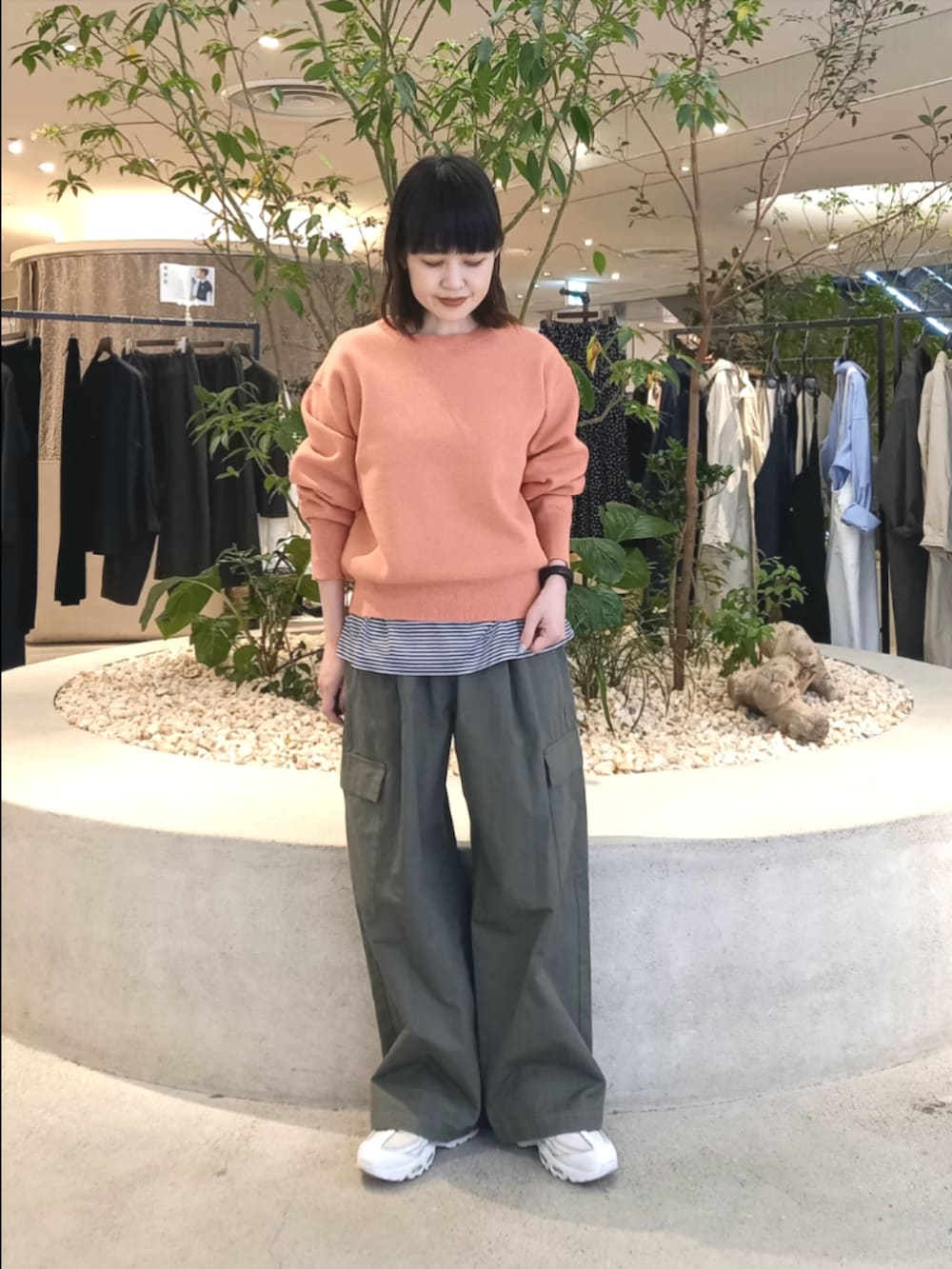 普段ピンクは可愛すぎて避けがちな私ですが、ユーティリティパンツとカジュアルに合わせるとバランスがとれて◎