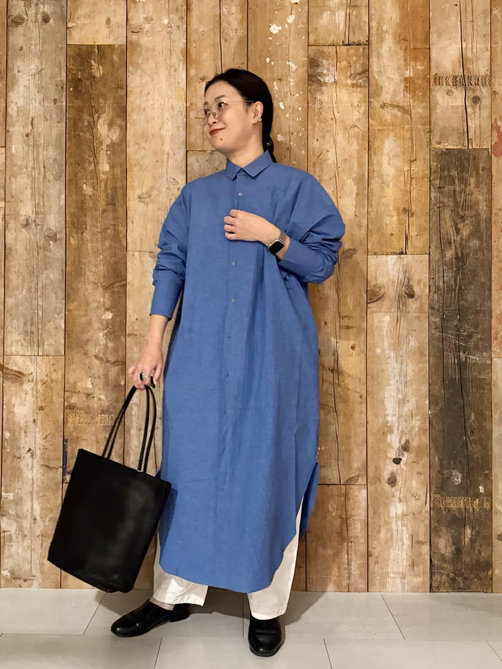 ブルーが印象的なシャツワンピース🫐