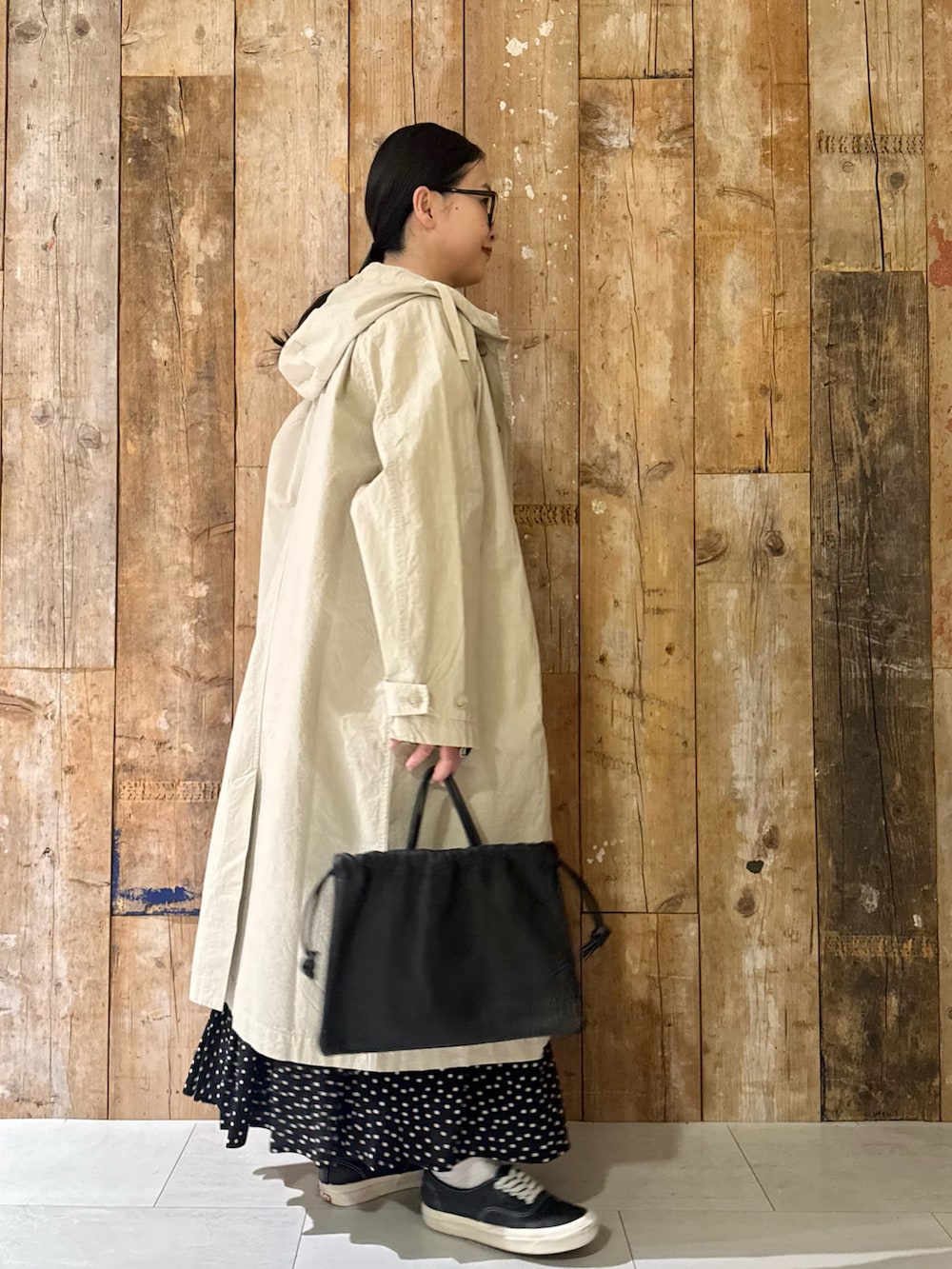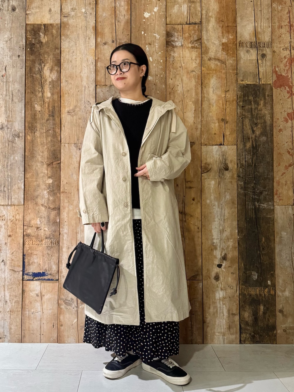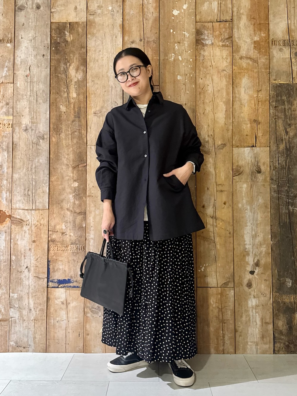 春アウターにドットスカートで