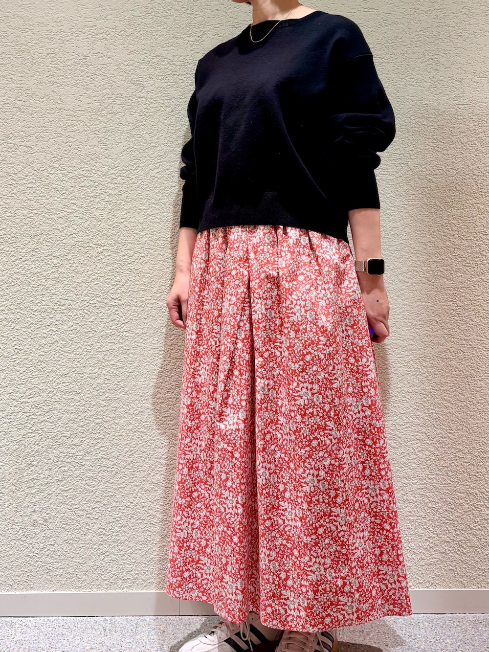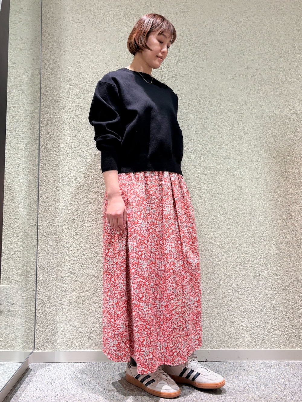 シンプルにBLACKのニットを合わせて甘さ控えめに。