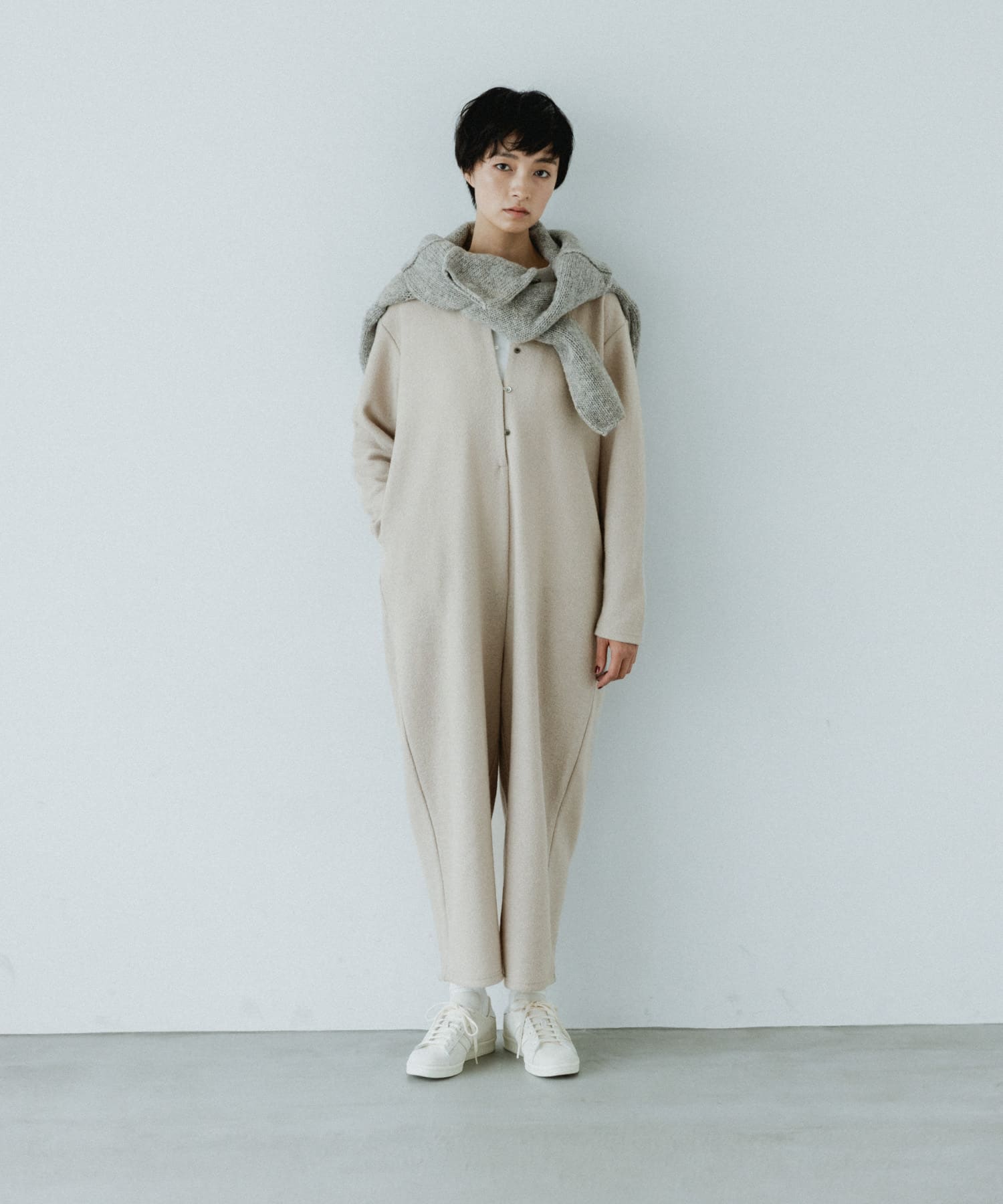 圧縮ウールのサロペット。