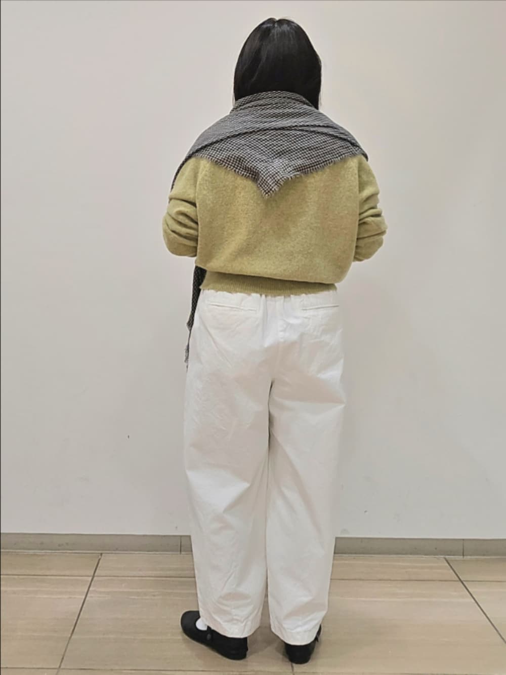 春を予感させる綺麗な柔らかな色に、白いパンツで明るいトーンにまとめてみました。