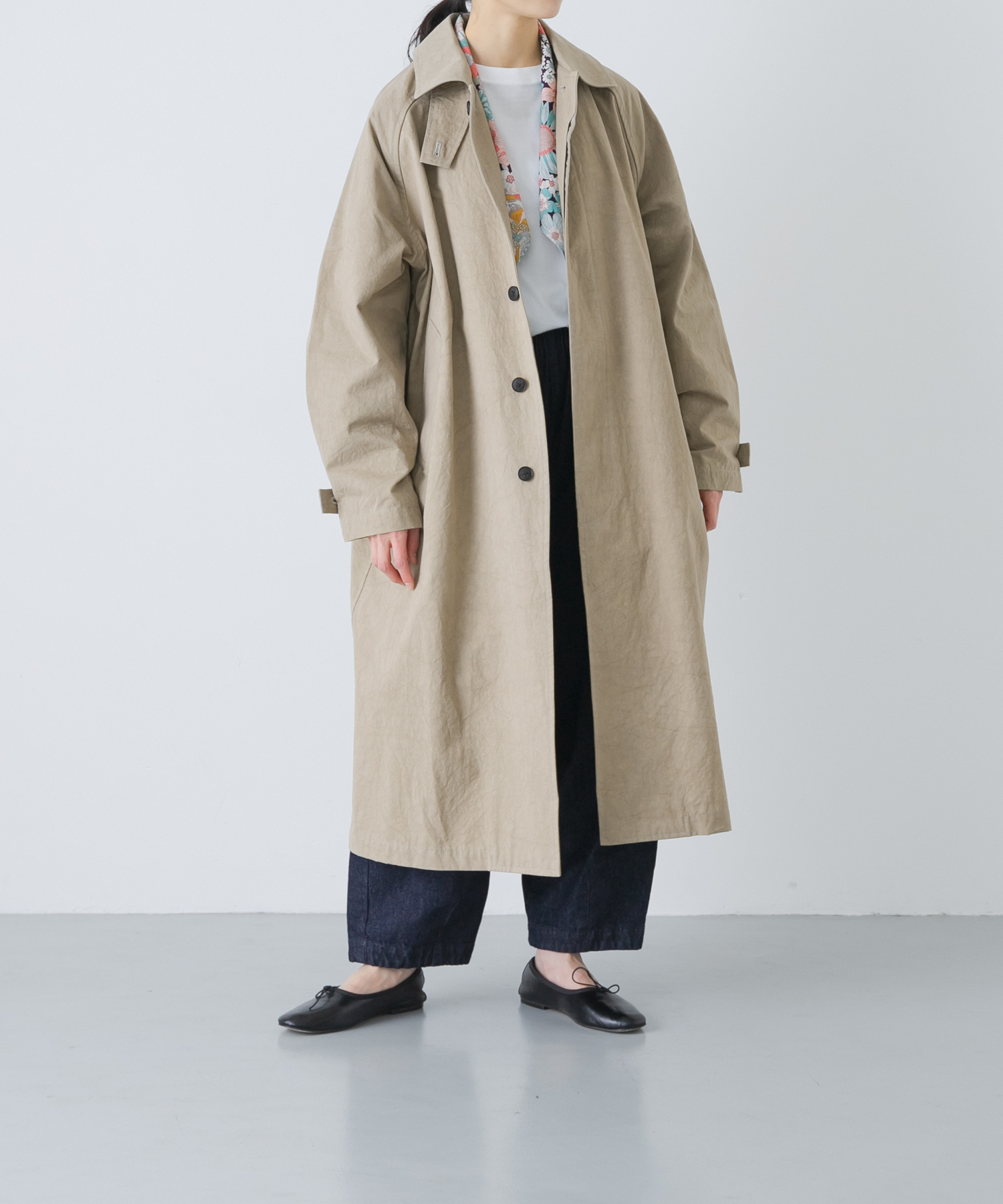 遠州染めの風合いとゆったりしたシルエットが可愛いバルコート。