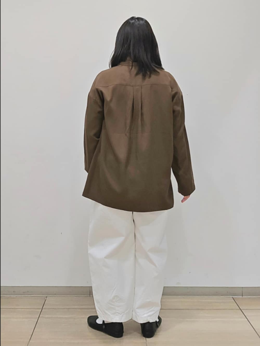 柔らかい、ゆったりとした、とろみ系のシャツに、定番の白いパンツを合わせてみました。