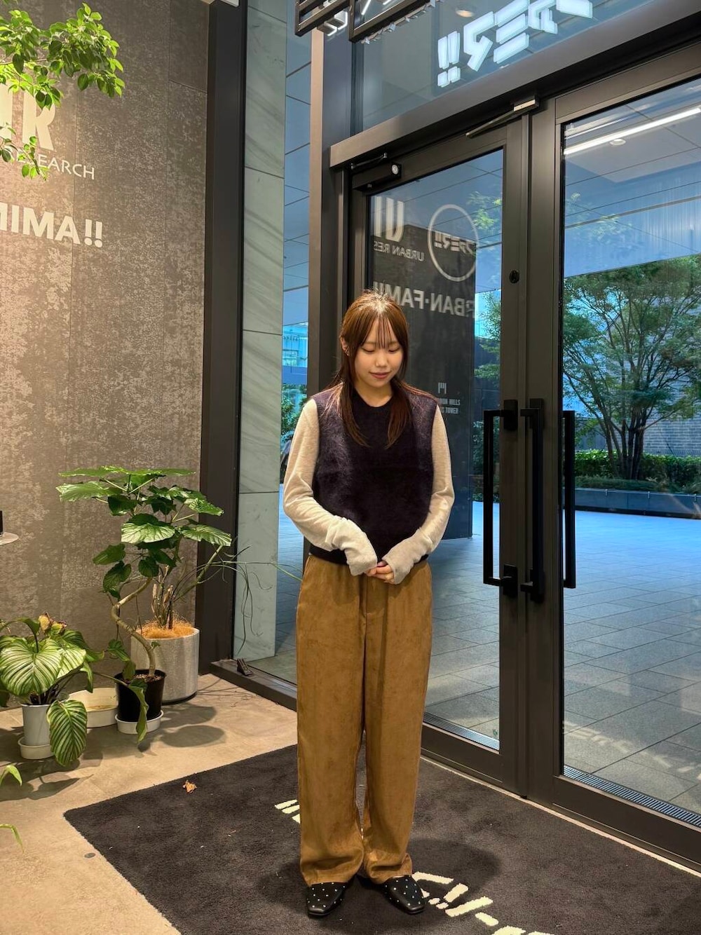 キャメルのスウェードライクパンツは、どんなトップスと合わせてもコーデが引き締まる万能アイテムです◎