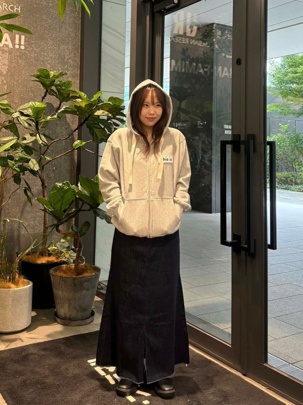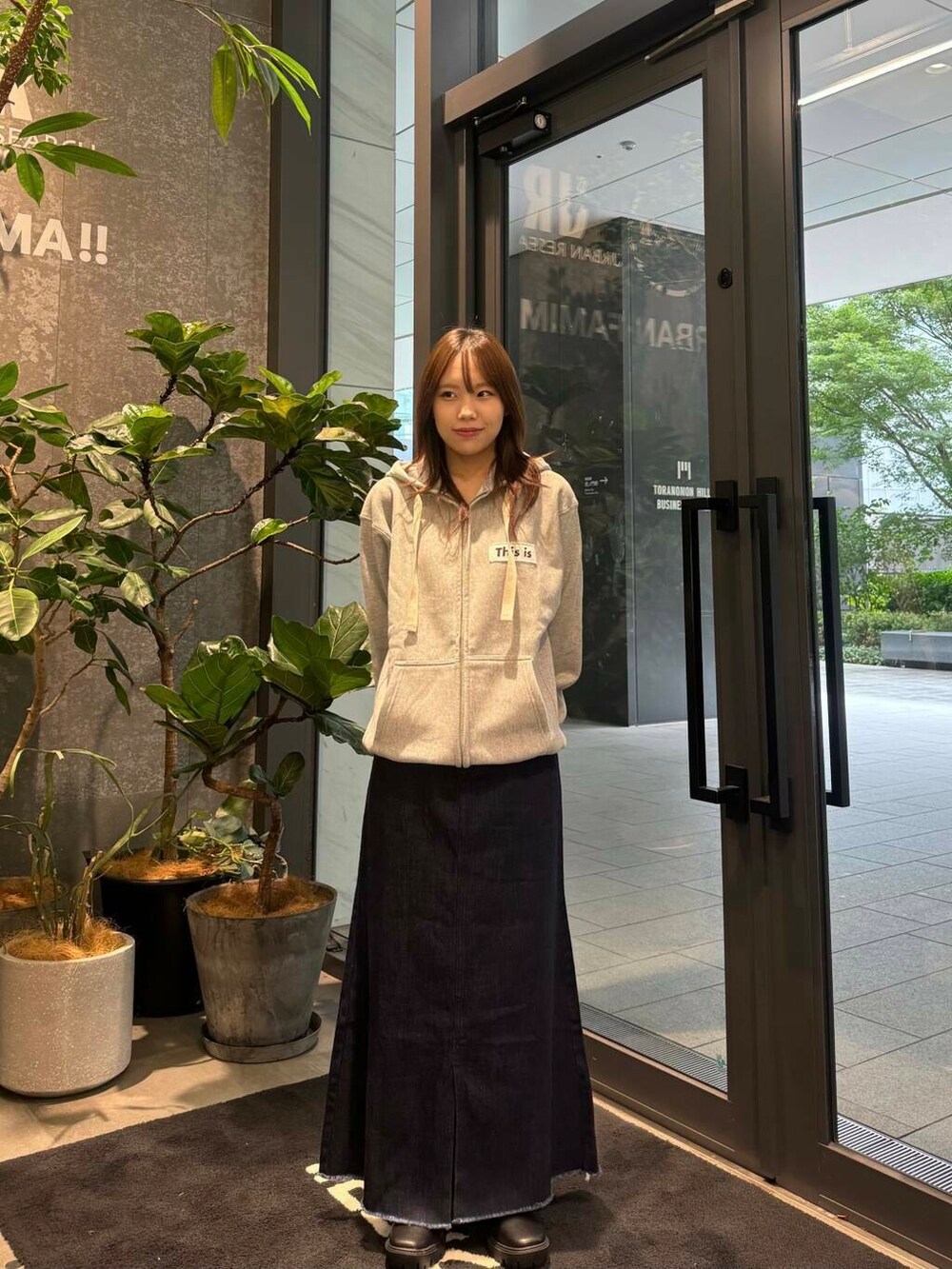 デニムスカートは割とタイトなサイズ感ですが、デニムが柔らかく、前にスリットがあるので歩きやすいです◎